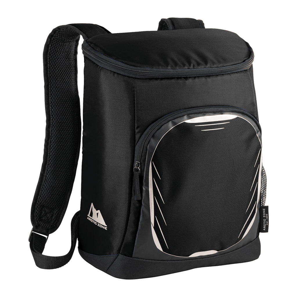 The Arctic Zone 18 Can Cooler Backpack is the perfect portable cooler to store cold beverages. Made with high density thermal insulation, the Ultra Safe® lining keeps contents cold and prevents leaking. The cooler comes with padded adjustable backpack straps for comfortable transport. This backpack features an exterior zippered pocket, mesh pocket, and main compartment that can fit up to 18 cans.