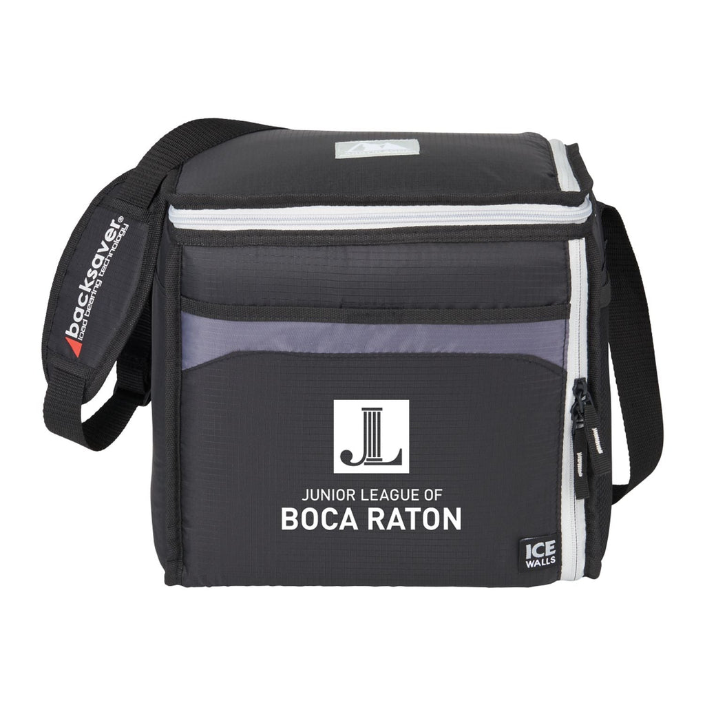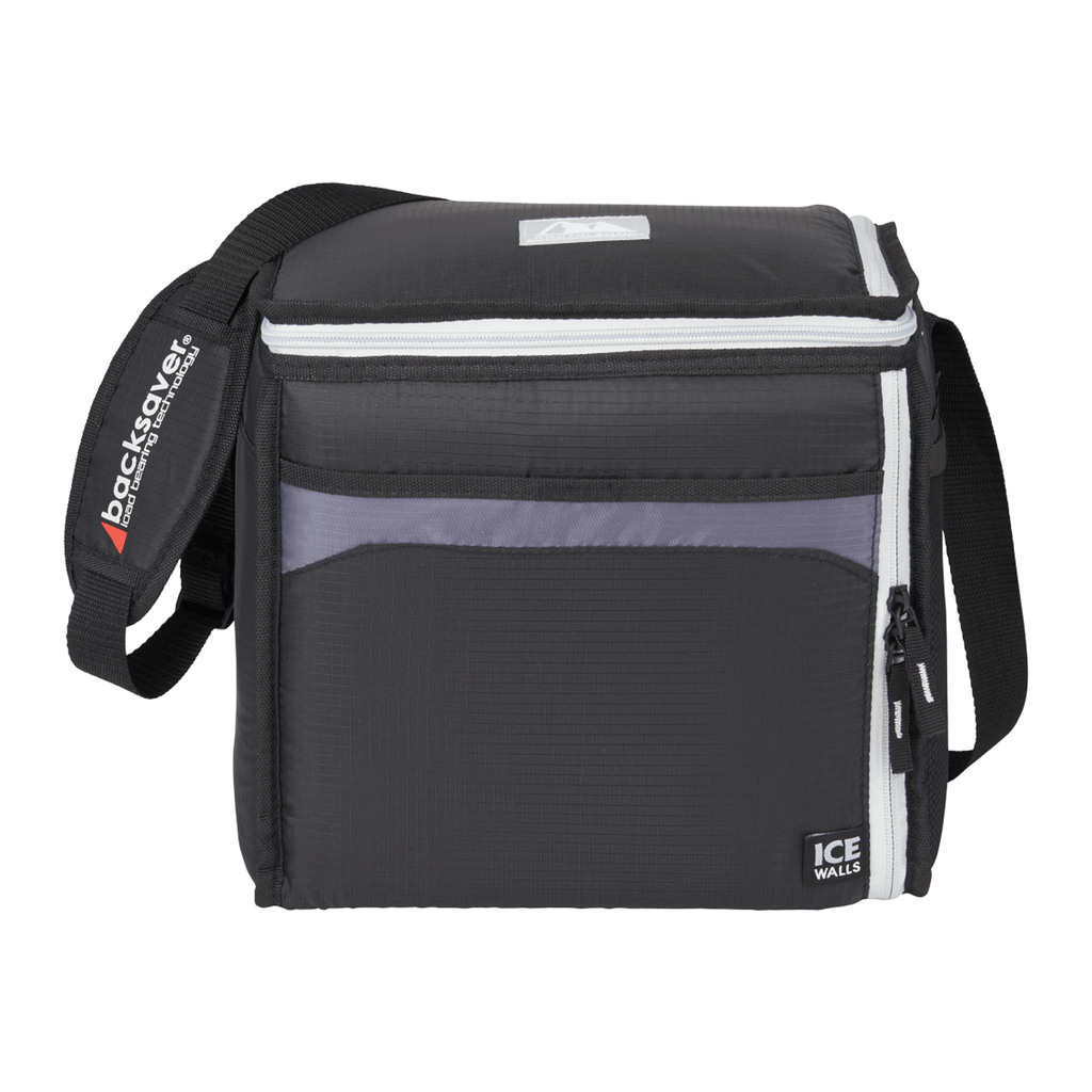 This lunch cooler includes four removable, reusable Ice Wall™ Packs that slide into the walls of the cooler. Made with high density thermal insulation, the Ultra Safe® lining prevents leaks and keeps contents cold. This cooler features an exterior front pocket, side mesh pocket, and main compartment that can fit up to 24 cans. The cooler is easily portable with an adjustable Backsaver® shoulder strap.
