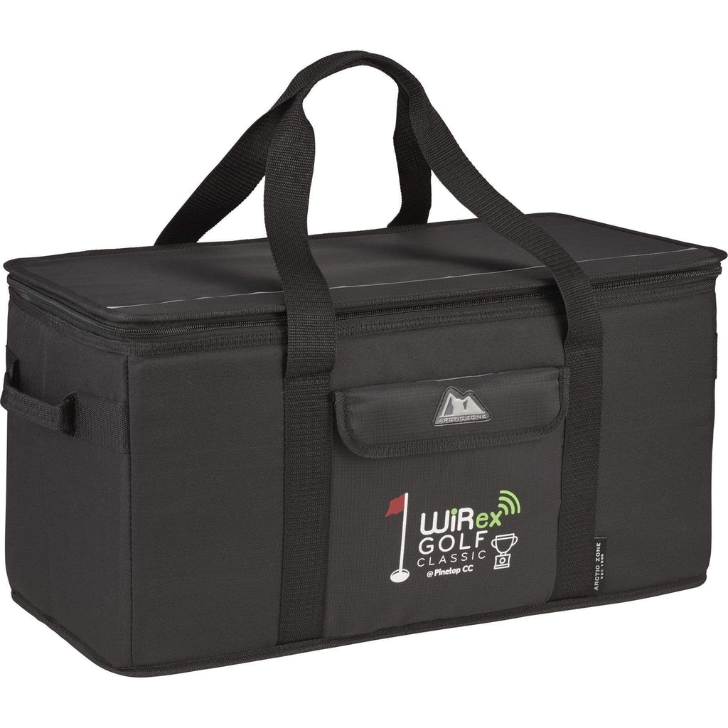 The Arctic Zone 64 Can Knockdown Cooler is the perfect space saving cooler. The cooler can easily be stored in your car trunk or garage folded down, then be set up for tailgating, grocery shopping or a picnic in just a quick second. Fill this cooler with up to 64 cans and carry with ease using the side grab handles. This cooler is PEVA lined and features a front slash pocket.