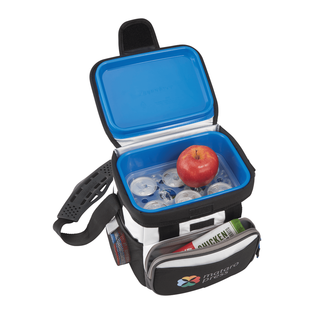 The Arctic Zone Titan Deep Freeze Hardside 9 Can Cooler features Deep Freeze™ high performance insulation with radiant heat barrier and a triple layer ColdBlock™ base to create superior cooling. There is a “flip-open”, patented Zipperless™ lid that provides quick access to food and drinks and an insulated front pocket. The Rhino-Tech® exterior is tough, water resistant and wipes clean easily. The interior features a durable HardBody® liner. Designed for convenience and usability, this cooler also features an adjustable Backsaver® shoulder strap with shoulder pad that centers load weight to reduce muscle stress.