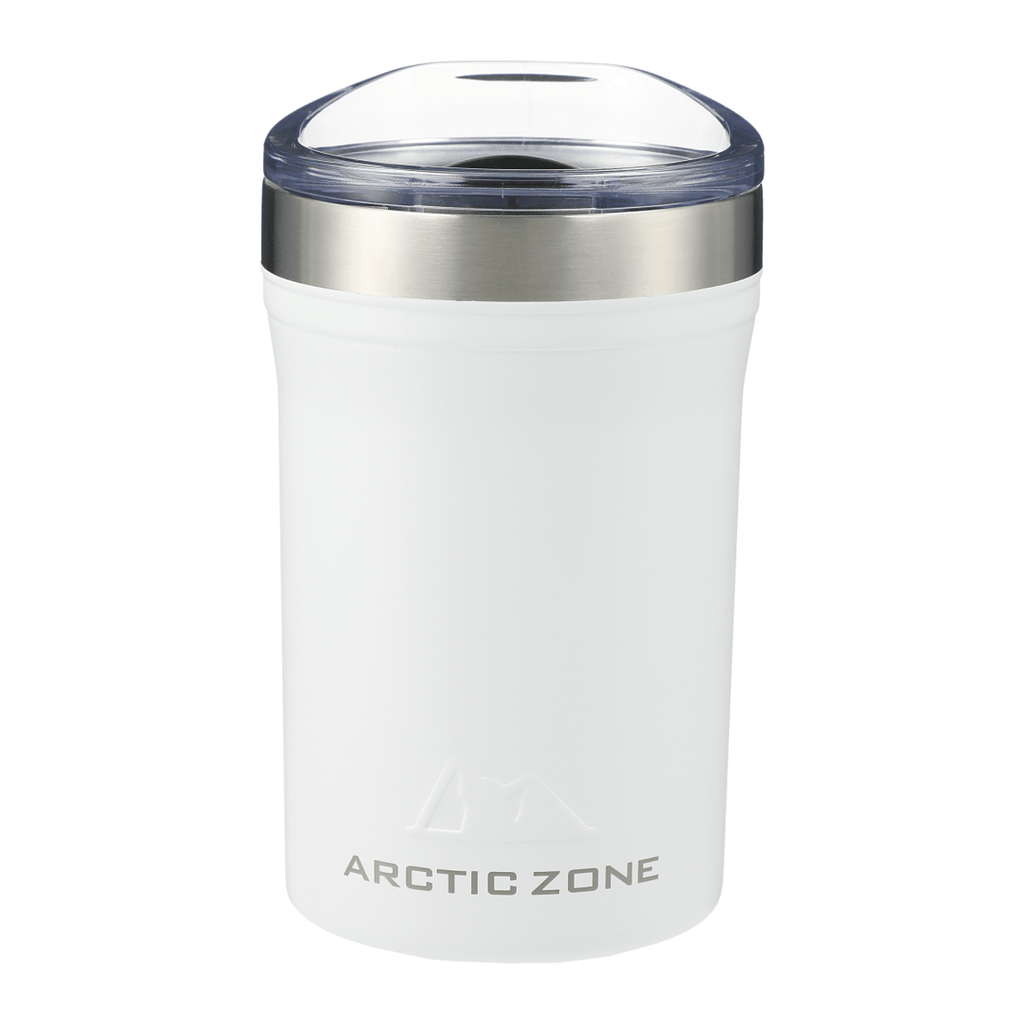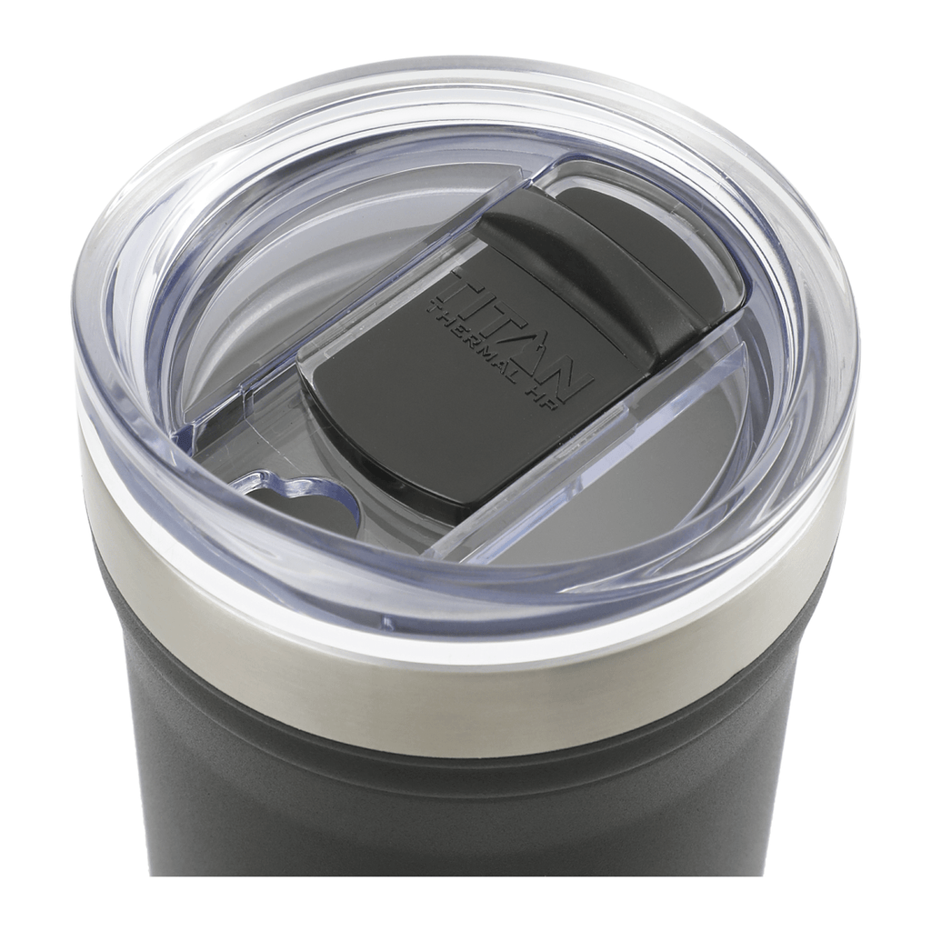 Enjoy a beverage by drinking through the push-on lid with slide closure, or place a 12oz can inside the tumbler. You choose! Durable, double-wall stainless steel vacuum construction with copper insulation, which allows your beverage to stay cold for 24 hours and hot for at least 8 hours. The construction also prevents condensation on the outside of the tumbler. On-trend, durable powder coating. Wide opening for comfortable filling and pouring. Retail gift box included. 12oz w/o lid attached.