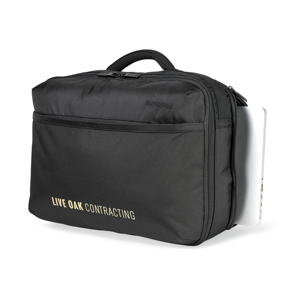 • Rear padded, zippered laptop compartment (fits up to a 17” laptop)