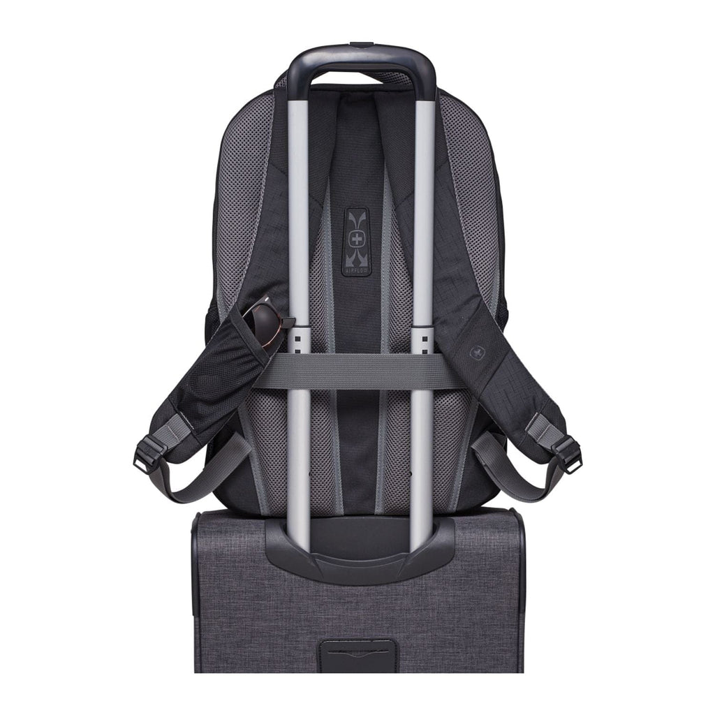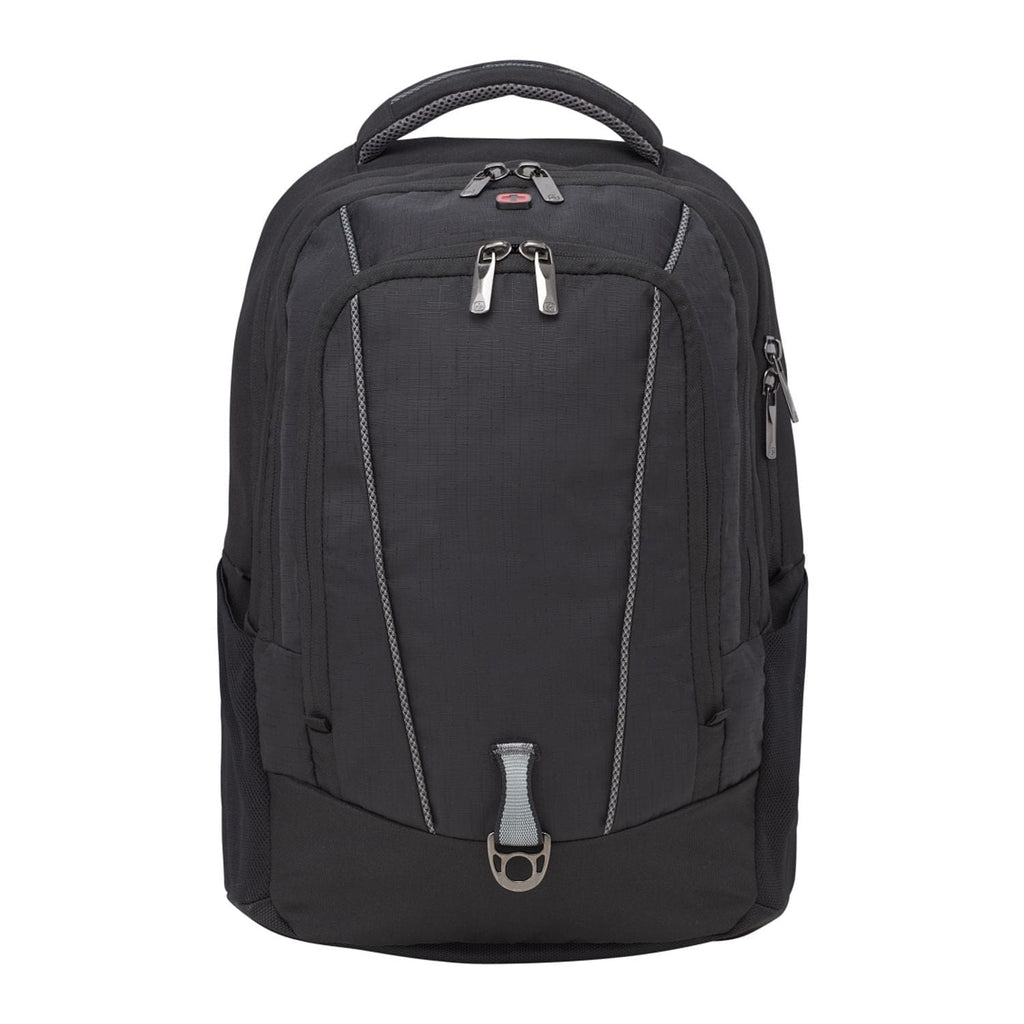 The Wenger Origins Recycled 15” Computer Backpack is made from eco-friendly RPET. The open main compartment features a 15” computer sleeve, plus plenty of room for your belongings. The bag also features an organizational front pocket with key fob, an additional zippered pocket and a mesh foam pocket. The front panel offers a custom d-ring for hanging carabiners. This bag features Wenger® Airflow moisture-wicking mesh, a supportive back board for computer protection and a back webbing trolley sleeve.