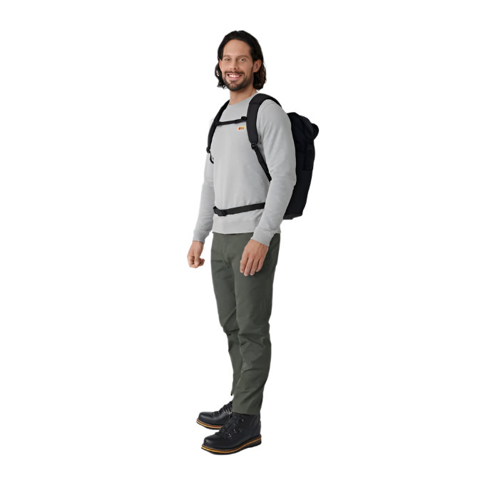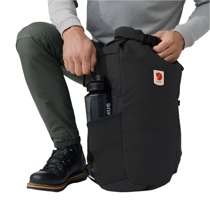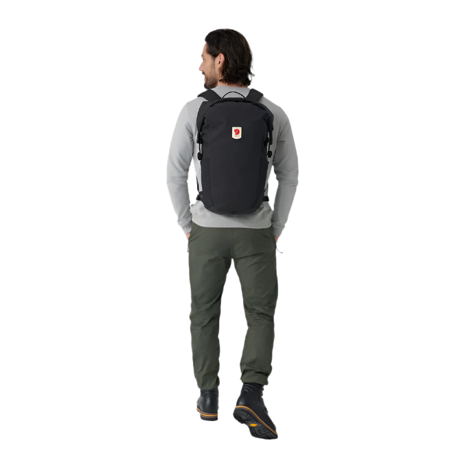 Fjällräven’s waterproof Bergshell fabric combined with taped lining makes this daypack a safe bet in even the most persistent rain. The roll-top closure can be secured either at the top or along the sides preventing water from getting to your gear. The pack has an inside padded laptop sleeve and a zippered mesh pocket. Outside loop for attaching a bike lamp (not included) to the front. Perfect for day hikes, travelling and everyday missions, in rain or shine.