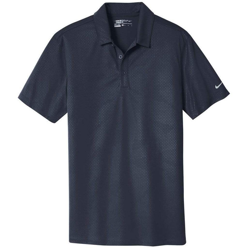 An allover embossed tonal tri-blade pattern gives this polo a sophisticated edge while Dri-FIT moisture management technology delivers breathable performance. Design features include a self-fabric collar, three-button placket and open hem sleeves. A contrast heat transfer Swoosh design trademark is on the left sleeve. Made of 5.29-ounce, 100% polyester Dri-FIT fabric.