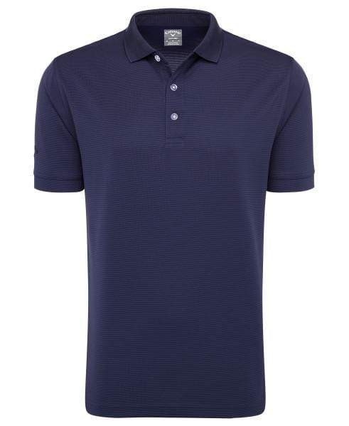 5.6 oz 100% polyester ottoman texture knit fabric. Opti-Dri technology transfers moisture away from the body to keep you cool and dry. UV Repel technology keeps skin safe from the sun's harmful rays. UPF 15+. Rib knit collar. 3-button placket with Callaway embossed buttons. Double needle hemmed bottom with side vents. Heat seal label provides tag-free comfort. Tonal embroidered Callaway logo on right sleeve.