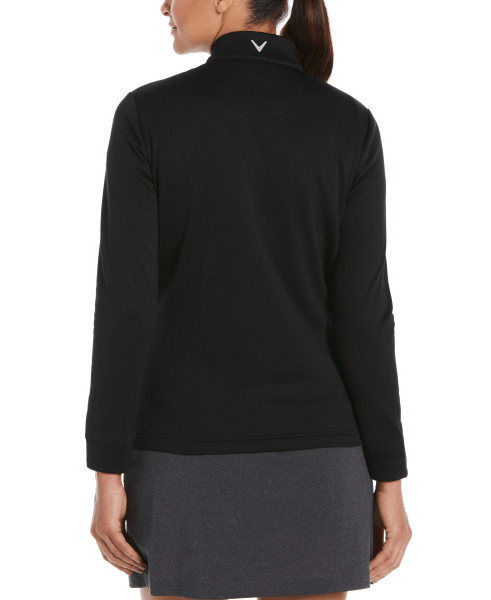 7.4 oz 100% polyester jersey knit fabric. Water Repellant technology protects you against inclement weather. UV Block technology keeps skin safe from the sun's harmful rays. Water repellant fabric on front-body only. Thermal fabric provides an extra layer of warm comfort. Full-zip with reverse coil zipper with Callaway Chevron on pull. Zipper placket. Front open pockets. Heat seal label provides tag-free comfort. Contrast Callaway Chevron logo on back yoke.