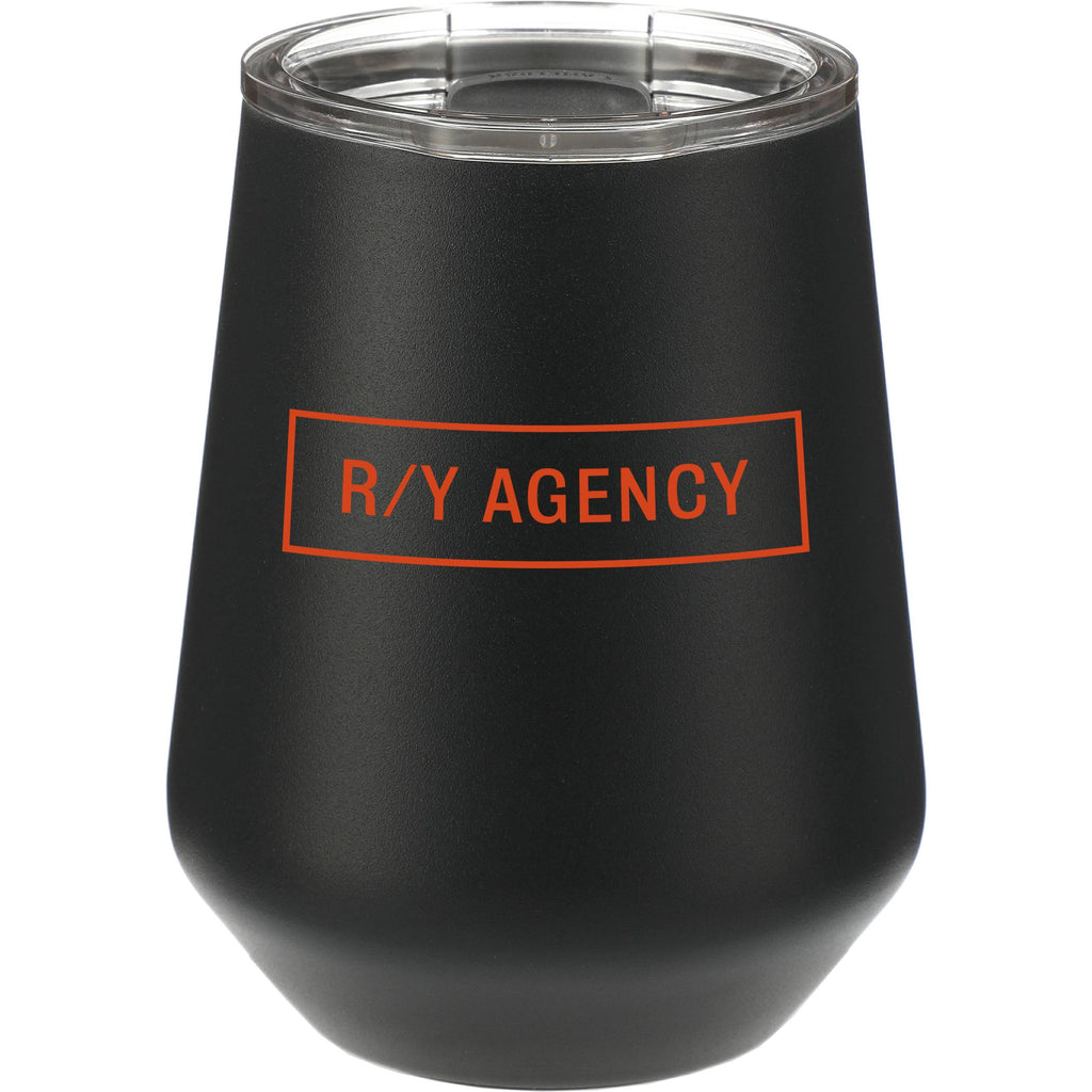 The wine connoisseur's perfect companion. No need to sacrifice the virtues of your favorite bottle. With copper vacuum stainless steel construction, our wine tumbler maintain preferred temperature, preserve flavor, and eliminate condensation on the external powder coat finish. A non-slip silicone pad on the base provides a soft landing on surfaces to avoid scratches and spills. Also can be used for hot beverages. Tumbler 6 Hours Cold, 4 Hours Hot. Recommended to hand wash only. 12oz.
