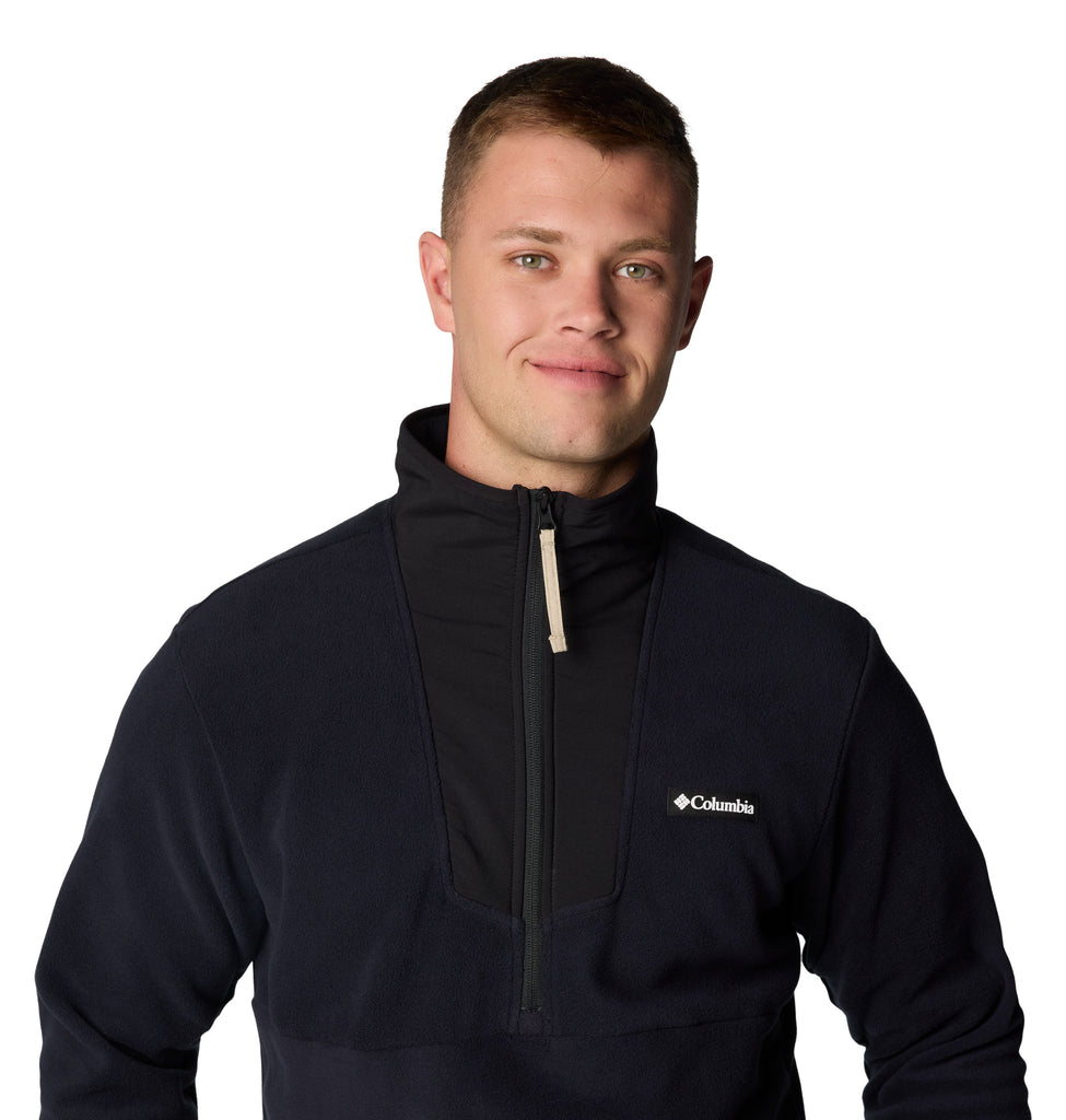 This everyday pullover offers lightweight warmth thanks to soft fleece, an easy-to-zip-up design, and protective stretch binding at the cuffs, hem, and collar for a finished look.
