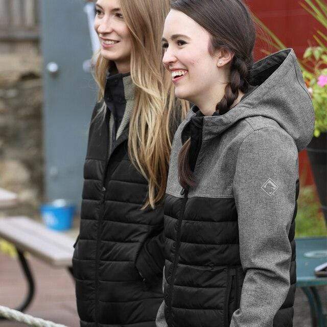 As the companion to the Pinnacle, we set out to beat cold weather with a ladies' jacket, built to perform just the same. Stay in-style year after year with the sharp features of a softshell/puffer hybrid. Our Motion softshell upper body, hood and sleeves will shield from rain and wind while the puffer middle will behave the same with added warmth where it counts. Adjustable wrist cuffs and a scuba hood with adjustable toggles keep you prepared and protected at every corner. Our goal is warmth without the bulk, and the Vista is just the ticket. Resilient in structure and effortlessly warm, this is your new go-to for fall and winter.