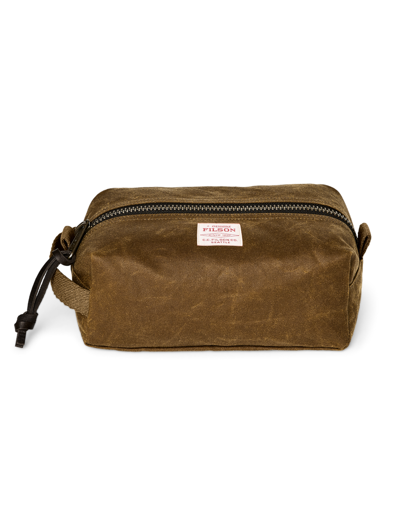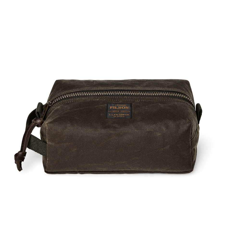 Our Tin Cloth Travel Kit is a lighter-weight Dopp kit that carries travel essentials for a lifetime of journeys. It's made with our iconic waxed canvas that's protected foresters, sportsmen, and tradesmen from harsh weather, brush, and abrasion for more than a century. It's fully lined with nylon to protect contents, and secures with a heavy-gauge metal YKK® zipper. The cotton-webbing grab handle doubles as a loop for hanging. Bridle Leather zipper pull.