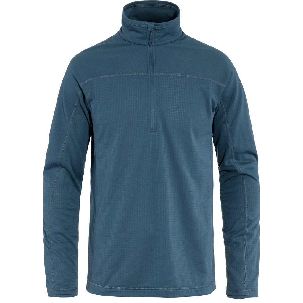 Light and comfortable fleece sweater with a half-length zipper – Abisko Lite Fleece Half Zip M is great to wear as a first or mid layer in warm climates. It is made from recycled polyester that transports moisture away from the body and dries fast. Regular fit with discreet thumbholes in the cuffs.