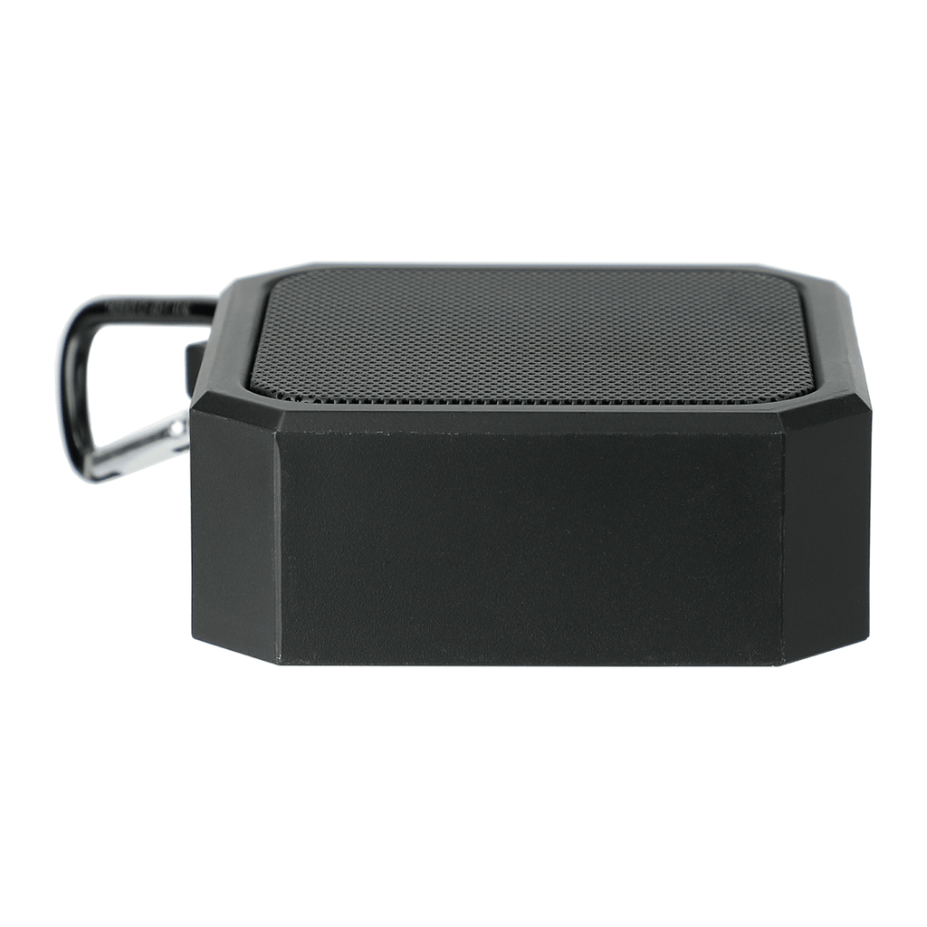 The rough and tough Blackwater Outdoor Waterproof Bluetooth Speaker can be taken on any adventure. Its compact size makes it effortless to carry, and the included carabiner clip attaches easily to your backpack for increased portability. This powerful 3W speaker has an IPX6 waterproof rating to protect it from damage in wet or rainy conditions. It charges in 1.5 hours and provides up to 2 hours of playback at maximum volume on a single charge. The Blackwater is compatible with Bluetooth 5.0, comes with a Micro USB cable, and has a Bluetooth working range of 33 feet (10 meters).