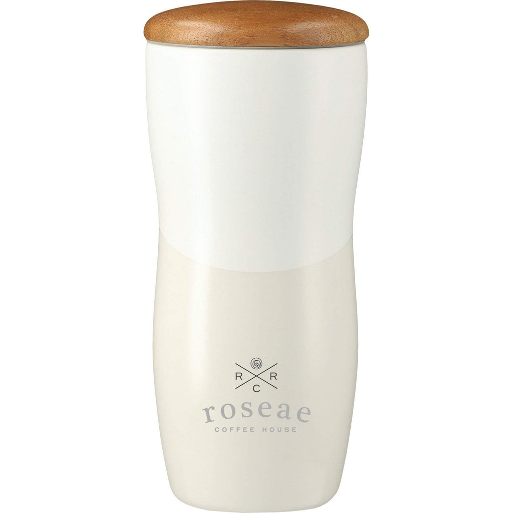 Reno Double Wall Ceramic Tumbler w/Wood Lid