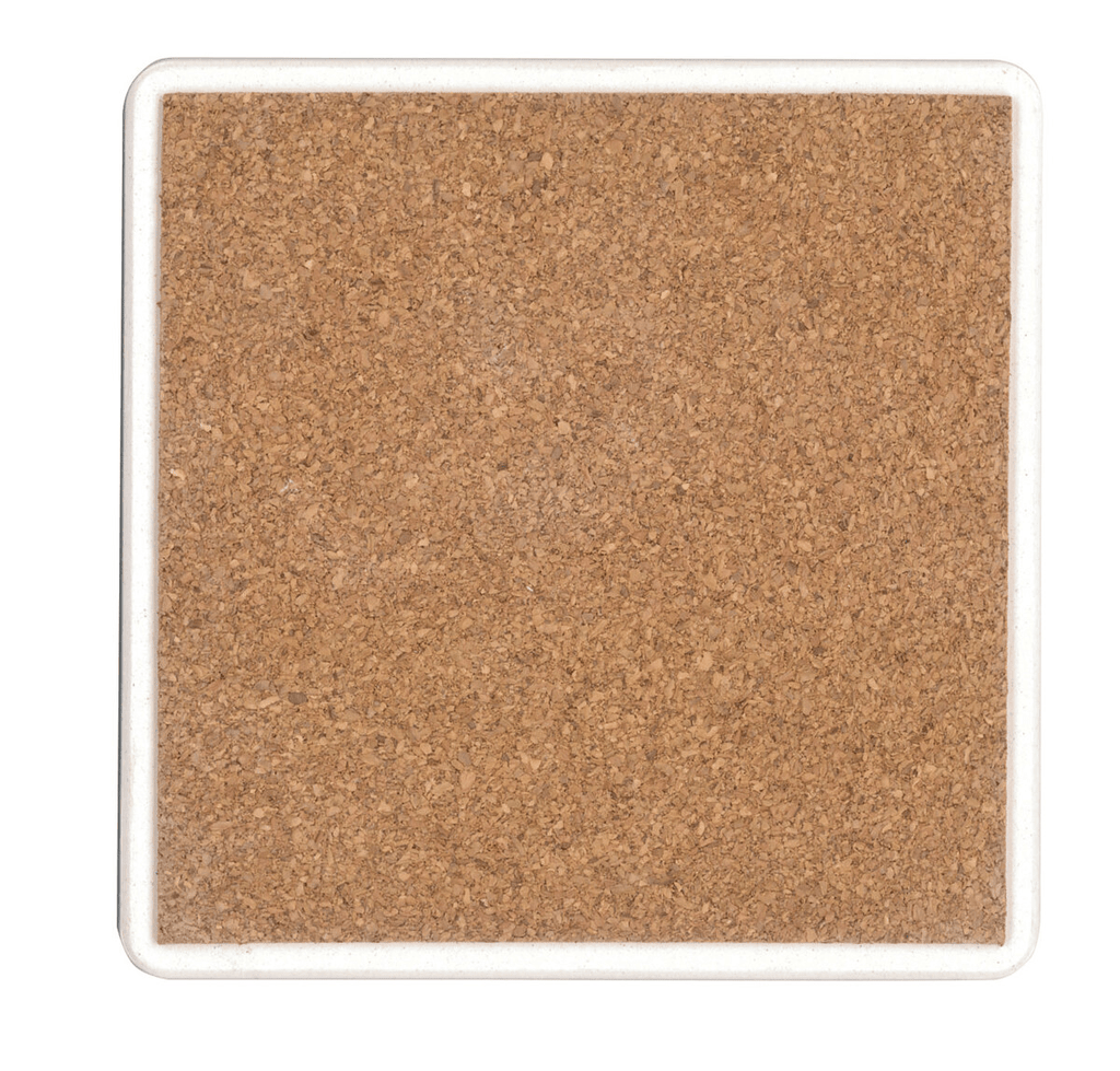 Thick (3/8") absorbent, 4-inch square beverage coasters with cork backing absorbs condensation and protects tabletops. Features "handcrafted" chiseled edges that distinctly frame your ad copy. Full coverage, color-fast imprint is permanently embedded into the surface insuring the longevity of your advertising message.