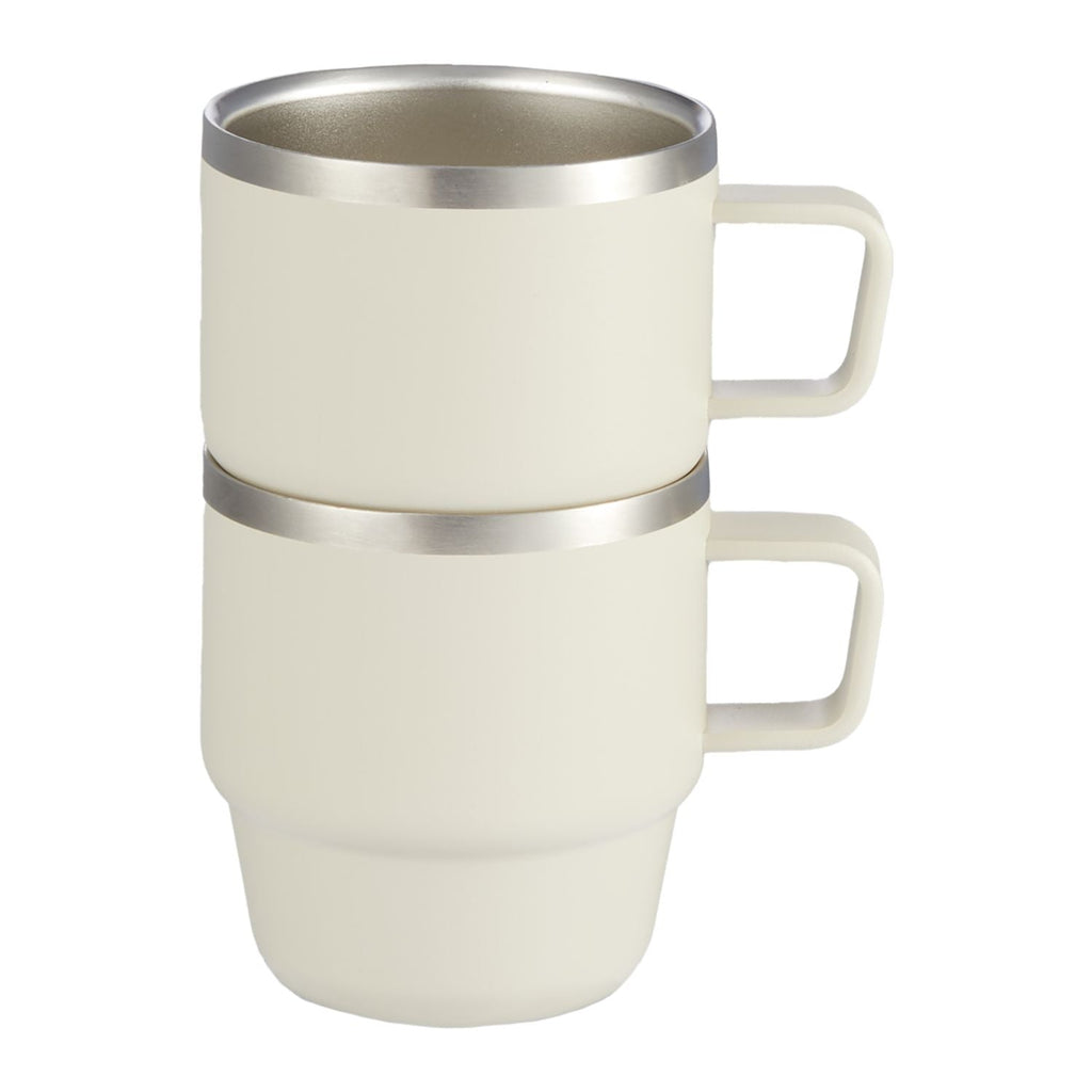 Enjoy coffee, espresso, French press or latte with the Doppio Stackable Recycled Mug Set. Featuring two 6-ounce recycled stainless steel mugs with a space-saving, stackable design. The on-trend neutral colors and sleek design will complement any décor. Shipped in a retail-inspired FSC-Certified giftbox, the Doppio is sure to make a big impression. Handwash only.