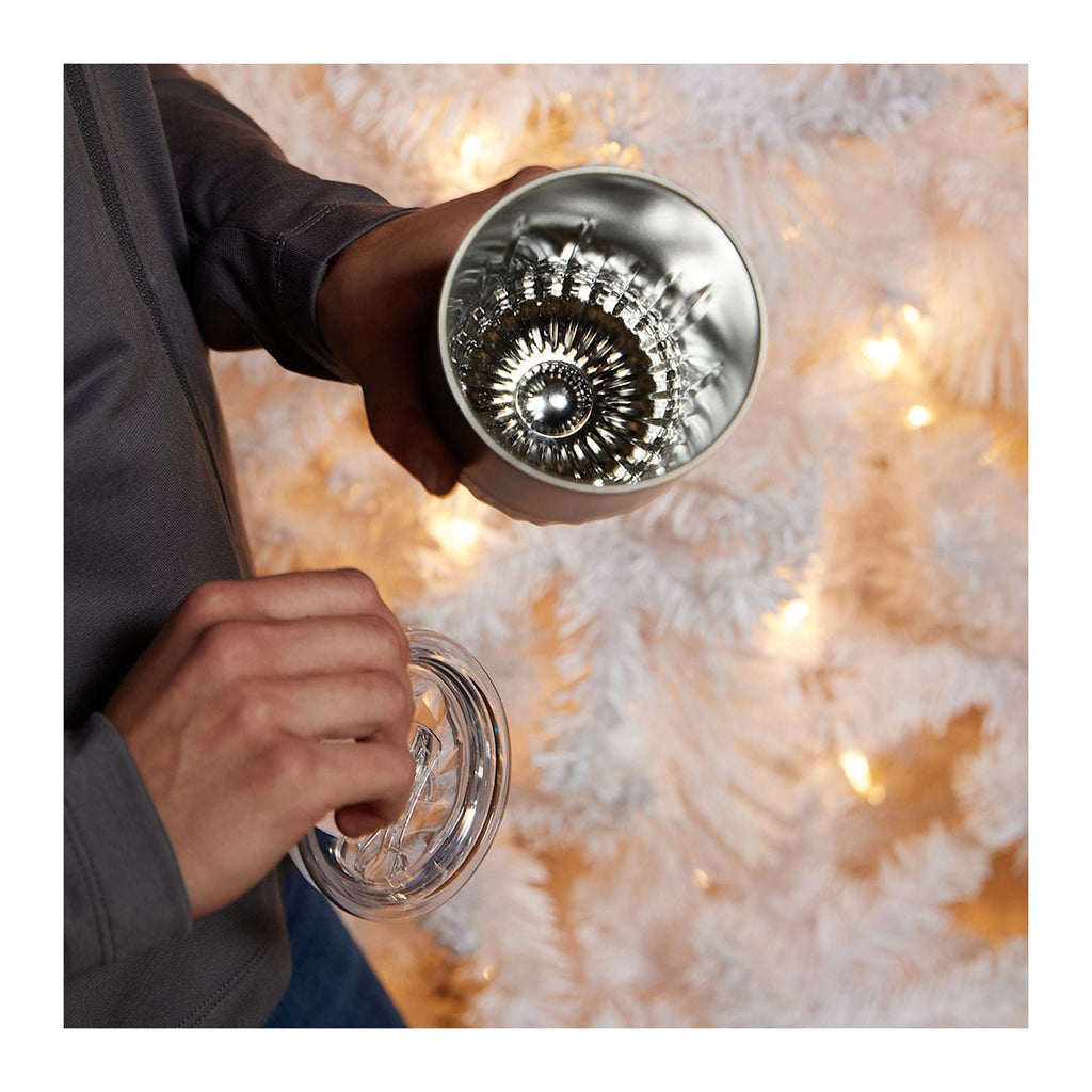 An elegant glass-like prism effect inside the tumbler, enhanced by the see-through lid with same prismatic design evokes the facets of a flawless diamond. This unique tumbler allows you to enjoy all types of beverages, from liquor to coffee, or even an ice cream sundae! Double-wall vacuum insulation with copper plating ensures that your favorite craft drink, latte or mocktail stays ice cold until the very last sip. The construction also prevents condensation on the outside of the tumbler. On-trend coating. Wide opening for easy filling, cleaning and adding ice. Fits most standard car cup holders. Hand wash only. 16oz.
