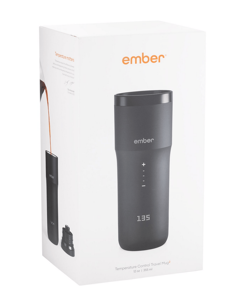 12 oz 18/8 stainless steel tumbler with temperature control, leak-proof push-to-open 360 degree threaded lid, touch display, built-in battery, and reinforced matte coating · gift box included.