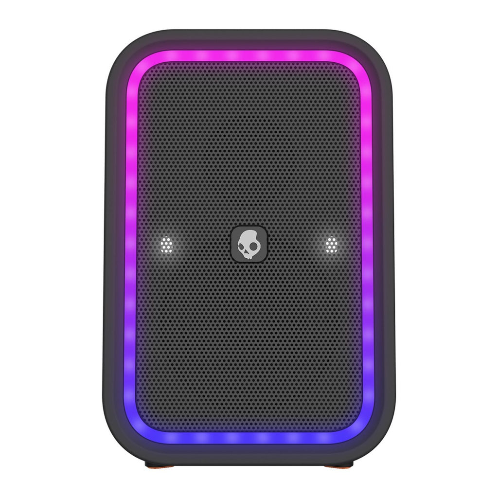 Most portable speakers leave you wishing for more. Not Stomp. This is a full-frequency speaker with beautiful, bright highs, rich mids and deep, punchy bass. Stomp packs enough punch to handle a house party on its own, but it adds the convenience of total portability, water-resistant construction, the ability to link to up to 99 more Skullcandy wireless speakers and an LED light show.