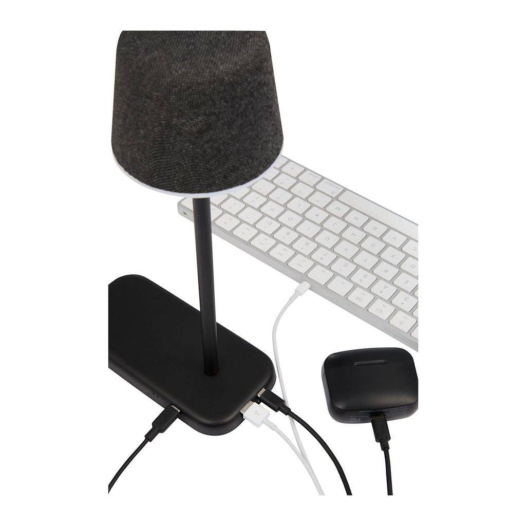 The Sound Shine Desktop Lamp and Bluetooth Speaker is the ultimate multifunctional addition to any workspace. Designed for both illumination and entertainment, the removable lamp features thirty-six dimmable LED lights with warm white and cool white settings to match your environment. The rechargeable lamp provides up to 6.5 hours of light at its brightest setting, ensuring long-lasting brightness. In addition to lighting, the integrated Bluetooth speaker delivers up to five hours of audio playback, allowing you to enjoy music, podcasts, or calls with ease. The base enhances functionality with a built-in 15W wireless charging pad, along with USB-A and USB-C ports for wired charging. Note: The base must be plugged in to use wireless charging and hub features. A USB-A to USB-C charging cable is included for convenience. Fully assembled height is 11.2".