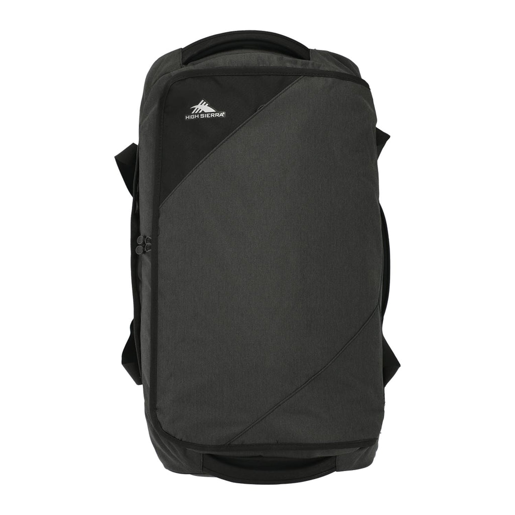 The High Sierra Forester RPET 28" Wheeled Duffel was designed for all casual travel needs. This duffel features water resistant fabric and a wipe clean interior. There's a roomy zippered main compartment design with large U-shaped opening for easy access. Extra features include grab handles for easy handling, quick access front and side stash pockets, padded grab handle, and interior cross strap.