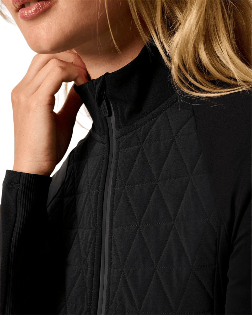 t's chilly but you still need your athletic mobility. Enter: the Hannah Performance Jacket. Mixed media with a lightly quilted front for warmth, and accented with comfortable touches like a knit collar, this is a must-have in the transitional days of the season.