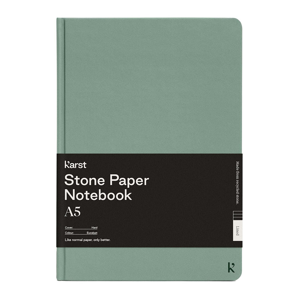 The 5.5" x 8.5" Karst Stone Bound Notebook is made for creatives by creatives. Featuring a water-resistant cover and pages, ribbon page marker and back document pocket. The smooth texture of the 72 sheets of stone lined pages and flat-lay binding provide ample comfort and writing space for your notes and ideas. This stone paper holds a C2C Cradle to Cradle Silver Certification. That means if you do have to dispose of your Karst notebook; it is recyclable.