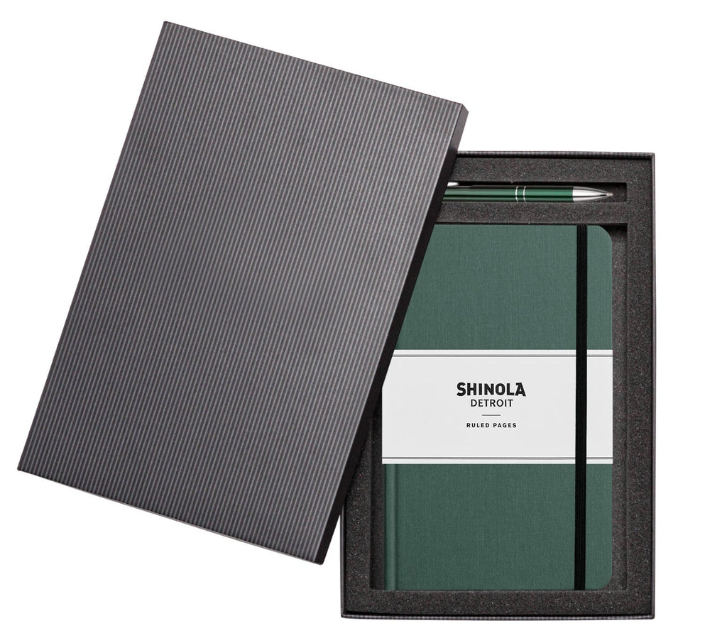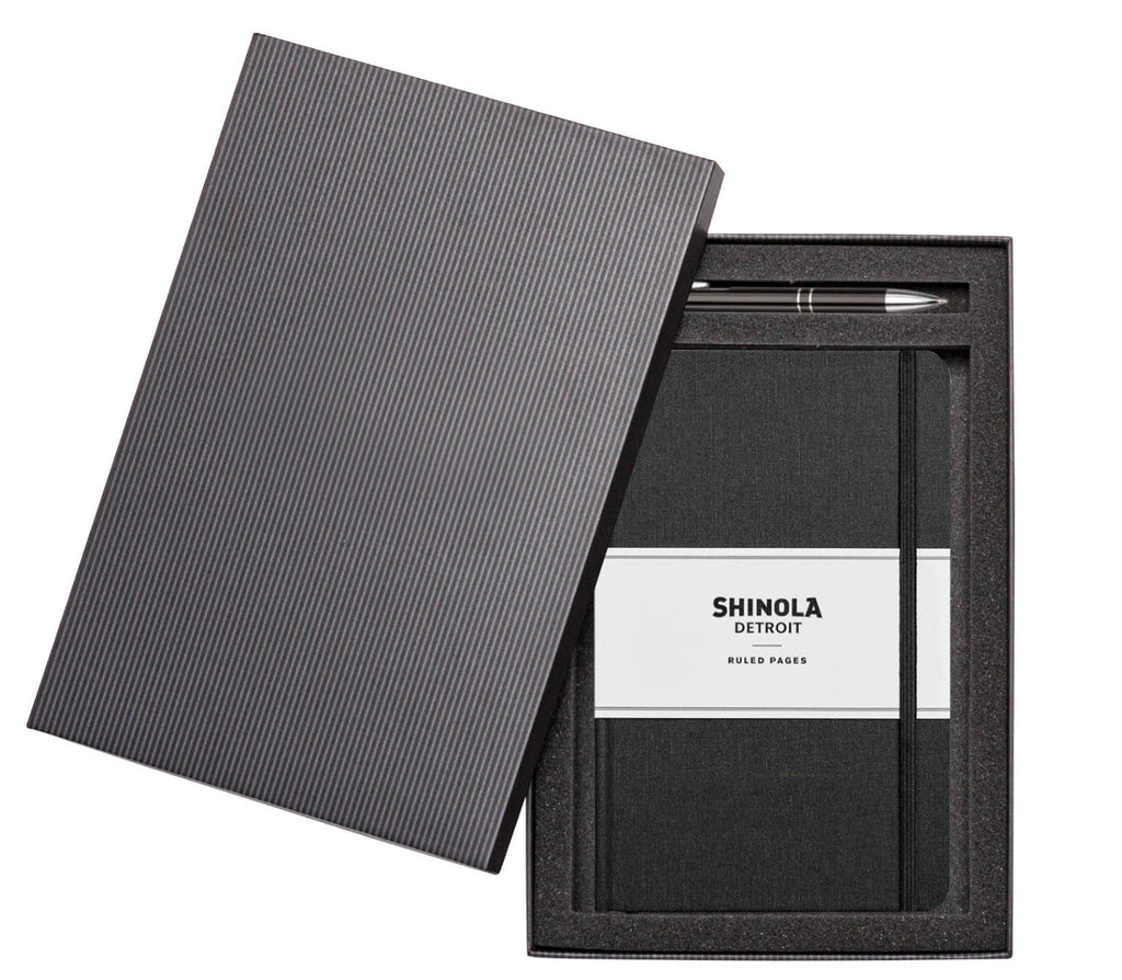The Shinola® Hard Cover Journal & Clicker Pen Gift Set Features...