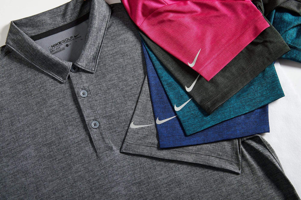 The allover crosshatch print adds a technical look to this polo, while the Dri-FIT fabrication delivers performance and ensures breathable comfort. Design details include a self-fabric collar, three-button placket and open hem sleeves. A contrast heat transfer Swoosh design trademark is on the left sleeve. Made of 5.29-ounce, 100% polyester Dri-FIT fabric.