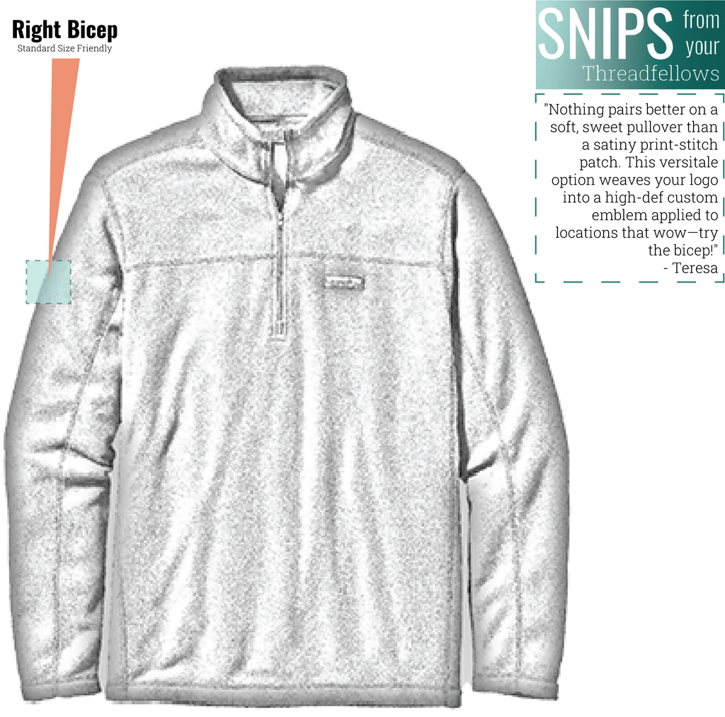 Patagonia reviews every order placed for logo and logo placement. Co-branding approval is required by Patagonia. The Right Chest (across from their logo) is not a standard co-branding location for the Patagonia brand. Typically for most projects and industries, "off chest" locations are preferred and that is why you will not see chest locations on our logo location list.