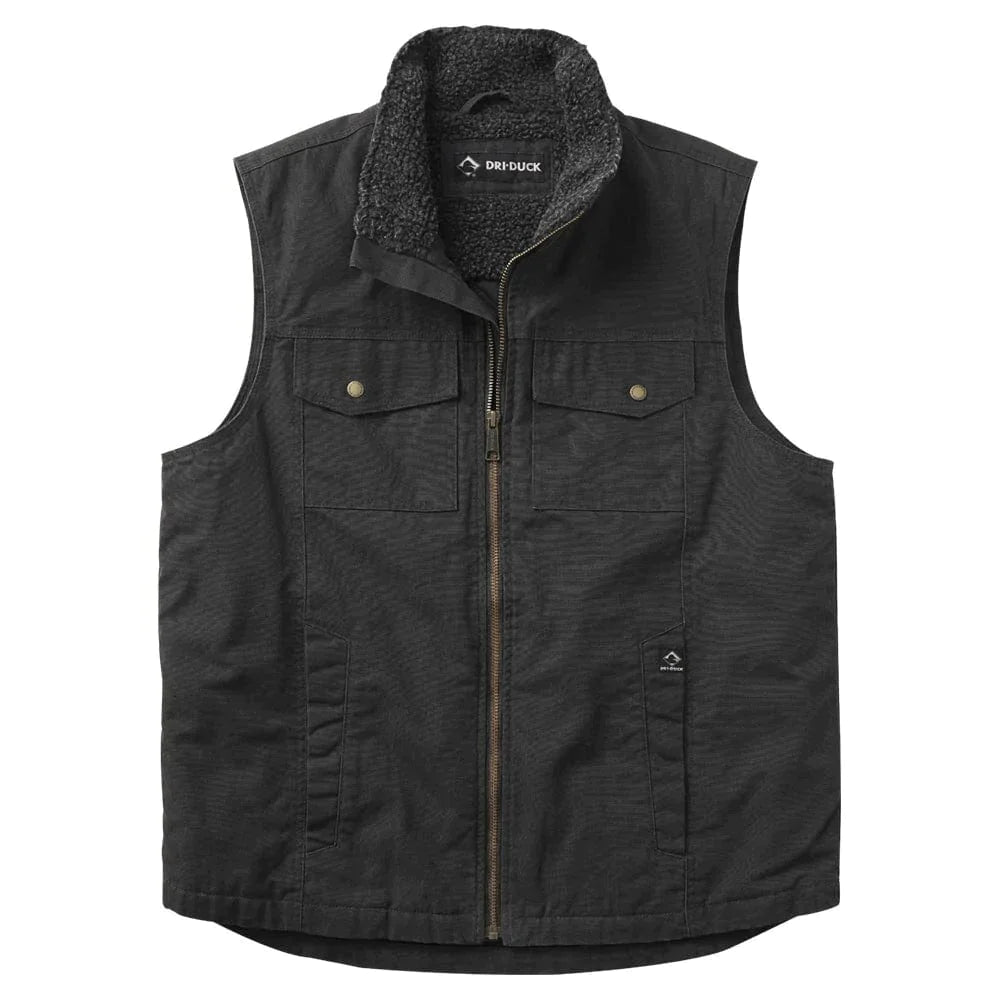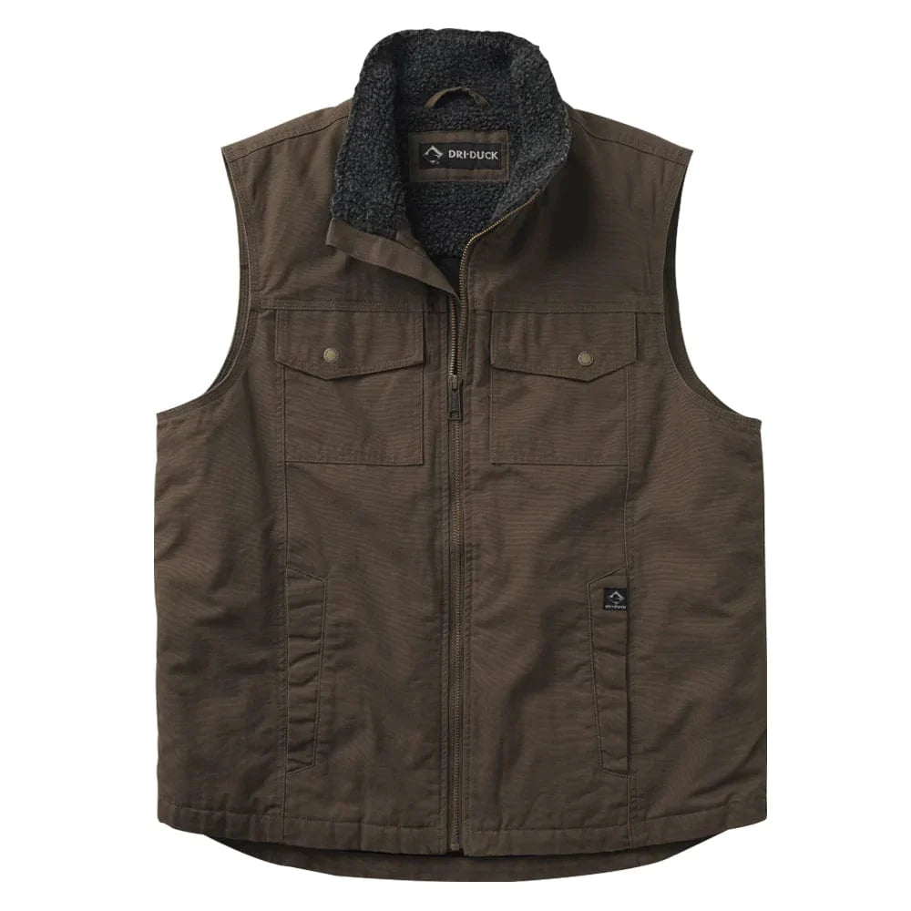 Warm, good-looking and rugged, the Trek Vest is an ideal layer. Insulated throughout and equipped with a snowtop poly sherpa-lined collar and back yoke, it protects from the wind and chill. Patch pockets with sturdy snaps at the chest, and interior cell phone pocket offer on-body security for your valuables. Toss on over a shirt or insulate your favorite coat, this vest is comfortable and durable without being bulky or excessively warm.