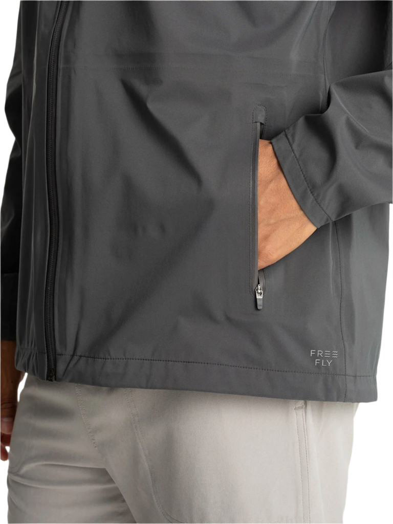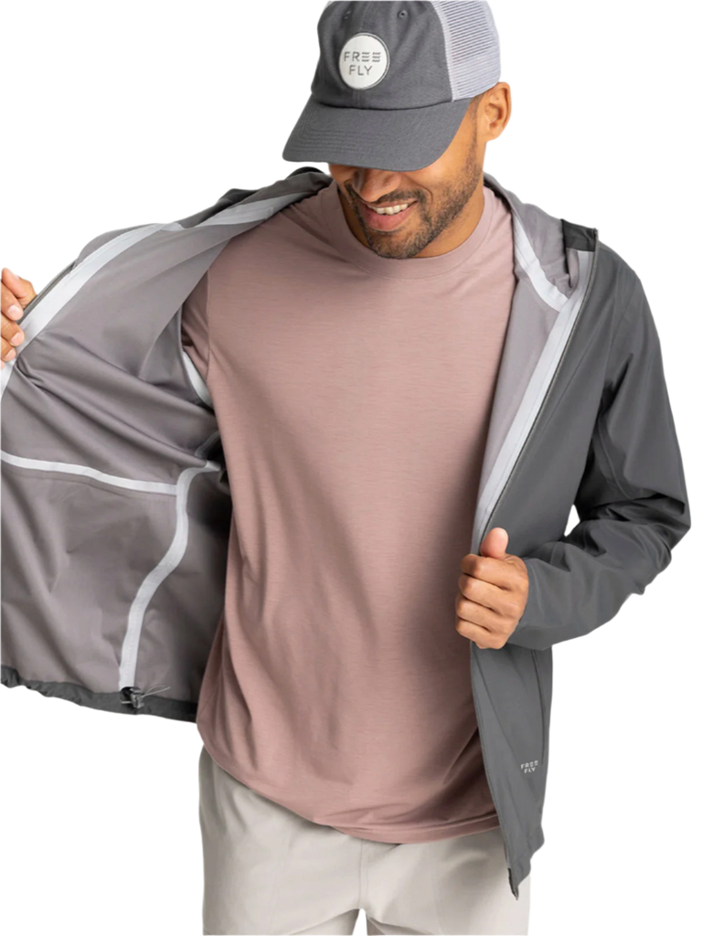 We just invented a new kind of rain jacket. Meet our whisper-quiet, 100% waterproof Cloudshield technology. Our Cloudshield Jacket gives you full waterproof protection, without the noisy, trash-bag like feel of most rain jackets. The fully seam taped, waterproof 3-layer (3L) shell features a quiet, matte face fabric, breathable waterproof membrane, and ultra-soft tricot backer for ultimate next-to-skin comfort. Structured, yet soft, you’ll question its waterproofness the first time you try it—but reach for it every time the sky opens up. Layer it over our Lightweight Fleece or make it your go-to travel shell.