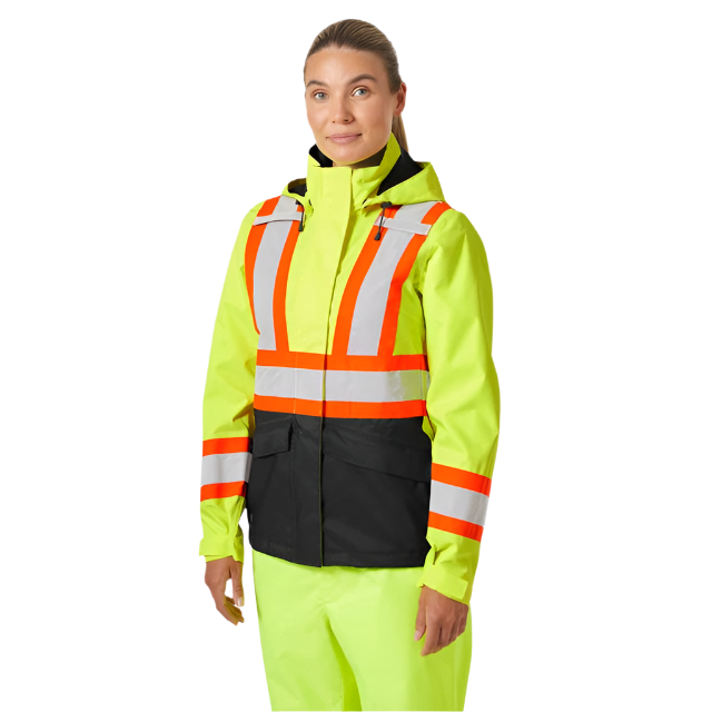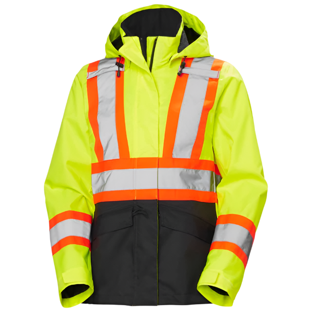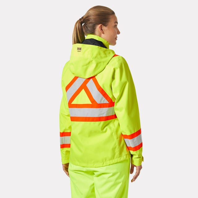 The women's Alta Shell Jacket is designed to keep you safe and dry no matter the conditions. With its highly waterproof and extra breathable HELLY TECH® PERFORMANCE fabric and CSA Z96-2022 - HIGH VISIBILITY (CAN) certification, this jacket will be the perfect garment for comfort and safety. Adjustable and detachable hood, adjustable cuffs and waist for added comfort and fit.