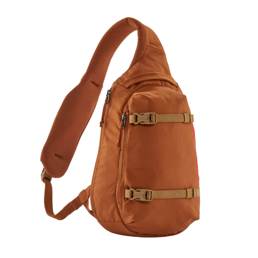 The go-anywhere Atom Sling carries the fundamentals with all the comfort of a backpack, the convenience of a shoulder bag and the ergonomic, low-profile performance of a courier’s tote. The Atom’s teardrop shape keeps the pack right behind your shoulders, where it stays out of the way when you’re moving through crowded streets and subway terminals. When you need to grab something, the single-strap design lets you rotate the Atom to the front for quick access. The large, zippered main pocket holds your lunch and extra clothes; it has a dedicated, padded tablet sleeve for your handheld electronics. Sized for essentials, the zippered outside pocket features a key clip and keeps your passport and sunglasses handy. A convenient stretch mesh pocket on the chest/shoulder strap accommodates a variety of phone sizes, and adjustable exterior compression straps manage different-sized loads such as a yoga mat or rain shell. Breathable 3-D spacer mesh pads the shoulder strap and back panel to wick moisture, dry quickly and increase ventilation. Made from 630-denier 100% nylon (50% recycled/50% high-tenacity) plain weave. The lining is 200-denier 100% recycled polyester. Both with a polyurethane coating and a DWR (durable water repellent) finish.