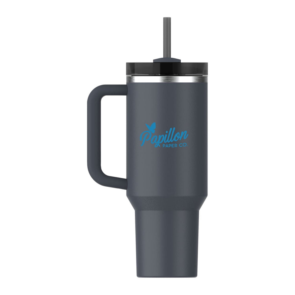 Constructed of recycled stainless steel for sustainable sipping, our 40 oz Quencher H2.0 offers maximum hydration with fewer refills. Commuting, studio workouts, day trips or your front porch—you’ll want this tumbler by your side. Thanks to Stanley’s vacuum insulation, your water will stay ice-cold, hour after hour. The advanced FlowState™ lid features a rotating cover with three positions: a straw opening designed to resist splashes while holding the reusable straw in place, a drink opening, and a full-cover top. The ergonomic handle includes comfort-grip inserts for easy carrying, and the narrow base fits just about any car cup holder.