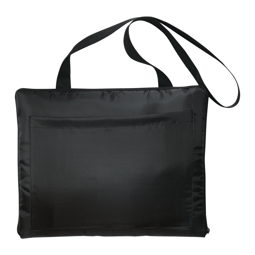 This perfect blanket can be used as a picnic blanket, seat cushion, or over your lap to keep warm while cheering on the big game. Easily folds into a convenient 13" x 11" tote bag with carrying straps and a 12" x 8.5" exterior pocket. The open dimensions are 50" x 60".