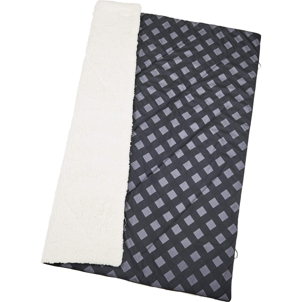 This High Sierra Sherpa blanket is one of the warmest available due to a 3 layer, quilted design that makes it perfect for indoor and outdoor use. Top layer is water resistant and a trendy plaid design, middle layer is cotton insulation, and under layer is a cozy Sherpa. Rolled up in a convenient package with nylon straps and laser engraved High Sierra aluminum clips, this blanket can travel with you anywhere