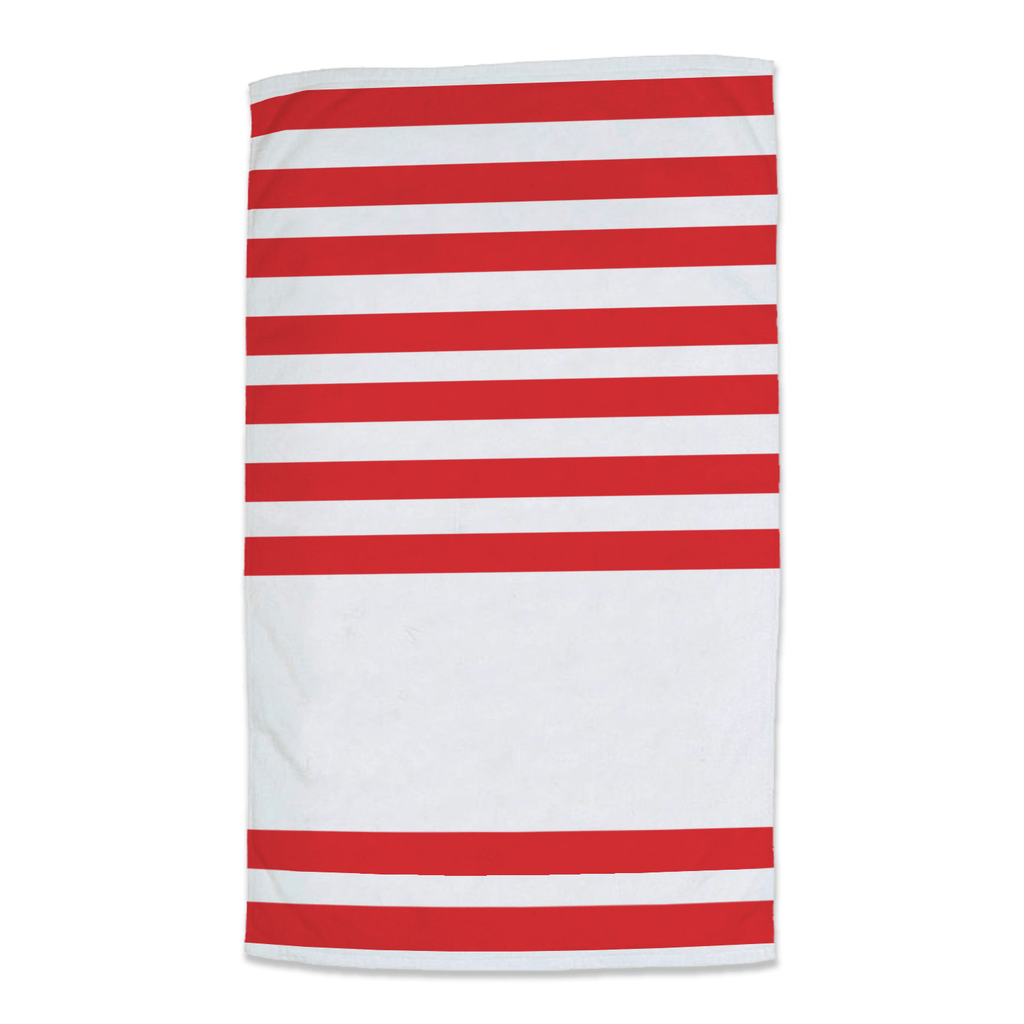 Our classic cabana with a twist. Striped beach towels are a timeless summer staple at the beach and the pool. With our new Sandbar Stripe design, you can make a big impression with more space for your brand. This 100% cotton terry towel is soft, absorbent, and ready to take on the sand, the sun, and the fun!
