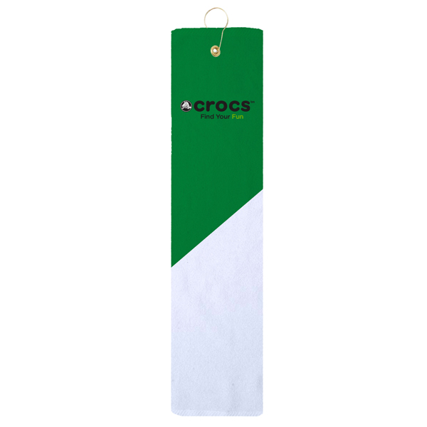 Terry velour, dobby hemmed, heavyweight, 100% cotton golf towel.