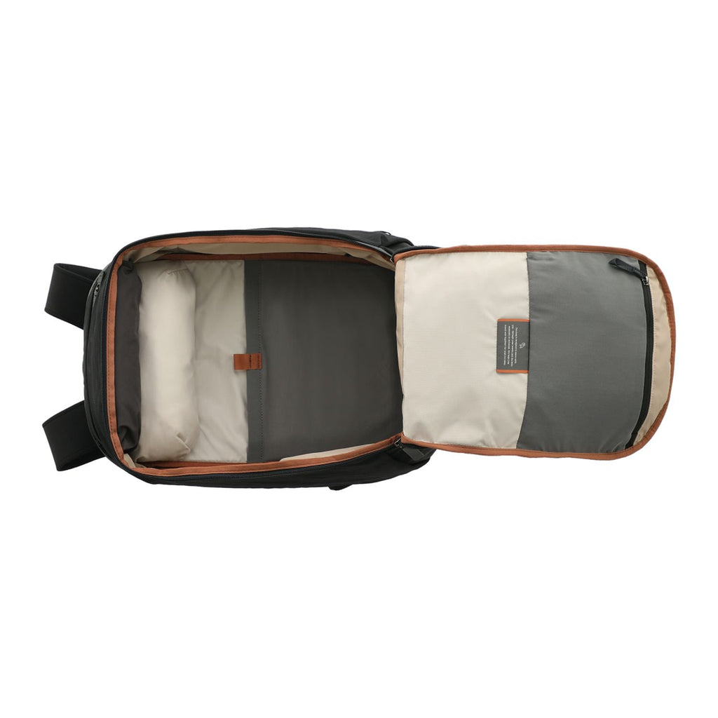 The Bellroy Transit 20L Workpack is streamlined to cleverly organize work, life and gym gear in a minimalist design. This backpack features a separate laptop section with internal pouch for accessories and can hold devices up to 16''. Find what you need easily with the full-zip clamshell opening for easy accessibility and quick-access front pocket with mesh slip pockets and pen loop. Keep your sunglasses safely in the soft-lined pouch on top. The external side pockets invisibly stores a wallet, water bottle and other essentials. A large internal stretch pocket is perfect for holding your gym shoes or sweatshirt, while the internal zip mesh pocket is ideal for storing small items. The contoured, breathable back panel and padded shoulder straps allow for comfortable carrying.