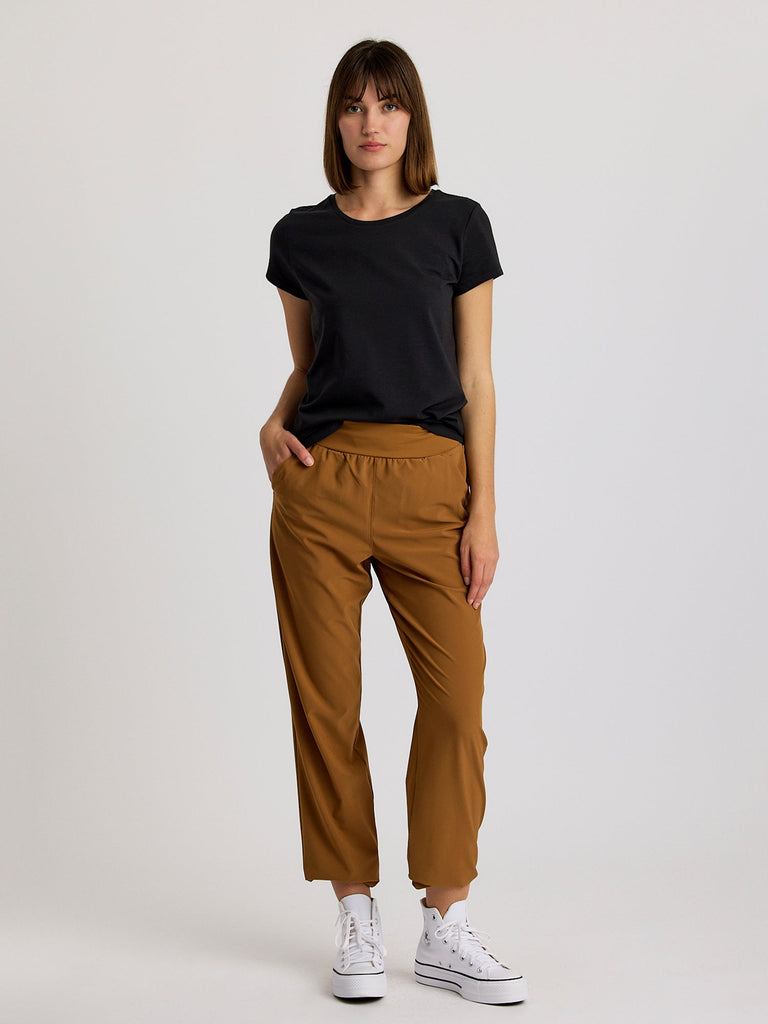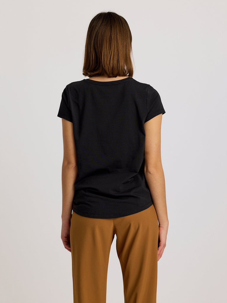 Stretchy but structured, the Current Tee is effortlessly cool. With a body-skimming silhouette and flattering curved hem, we love pairing it with joggers, leggings, or our Breeze Skirt for a casual weekend look. Crafted from a comfy cotton/bamboo blend, this tee has the drape and structure of your favorite cotton t-shirt, but the stretch and performance benefits of a more athletic style. Like we said: effortlessly cool.