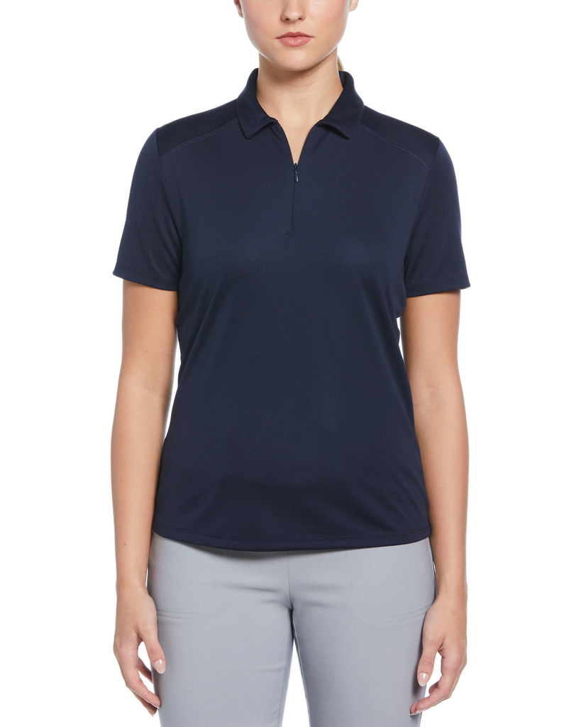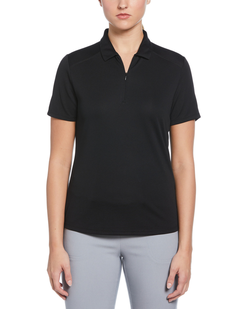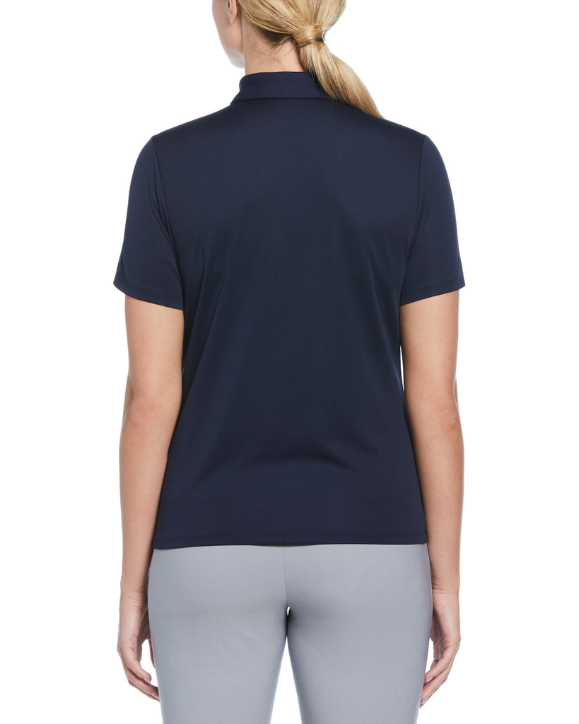 This PGA TOUR Apparel golf polo shirt for men is the perfect blend of style and comfort. This golf top is crafted with mesh fabric and features innovative ventilation and moisture wicking properties to help keep you feeling cool, dry and fresh from the first hole to the last. The classic, solid color design makes it easy to pair with your golf wardrobe for effortless style.