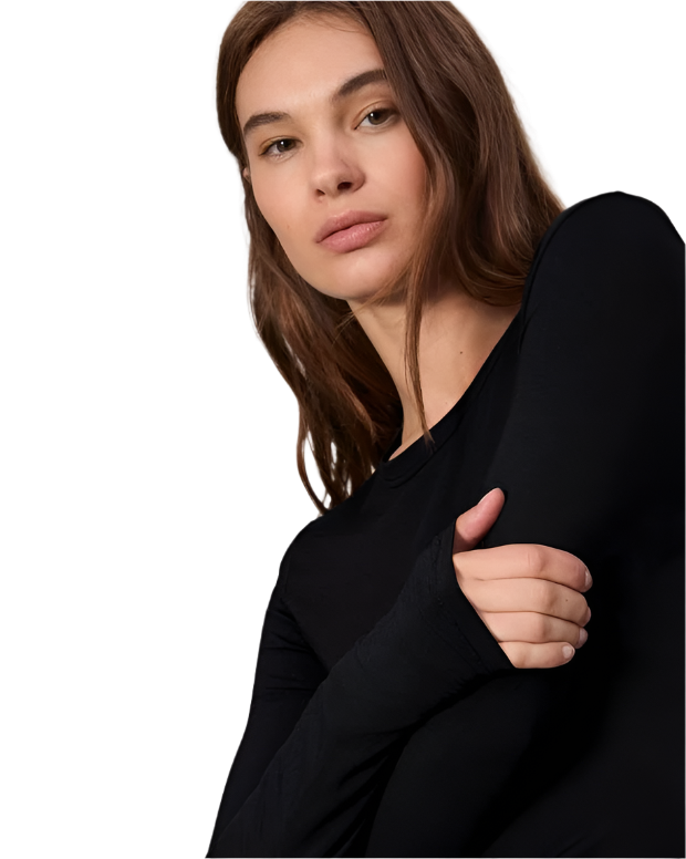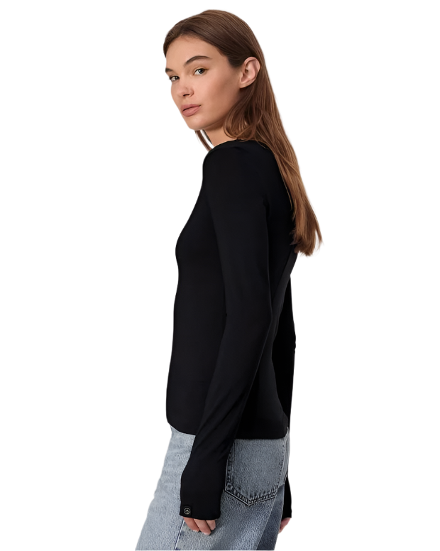 Timeless. Authentic. Iconic. One of the building blocks of a perfect wardrobe. This cropped and fitted slim long sleeve tee is woven in a Lyocell blend for a distinctly silky feel that makes this the perfect layering piece. Style with virtually anything in your closet.