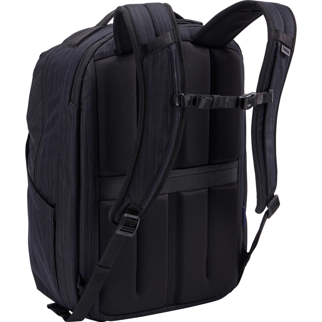 The Thule Stravan 2.0 Backpack combines sleek design with versatile functionality, making it perfect for both the office and travel. Crafted from 100% recycled body fabric, lining, and webbing, this Bluesign® certified backpack features a dedicated padded compartment to protect laptops up to 16''. For added convenience, it includes a trolley strap, water bottle pockets, and an expandable panel, allowing you to increase the storage capacity from 24L to 30L.