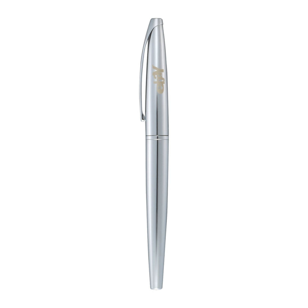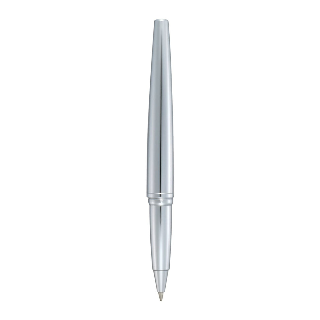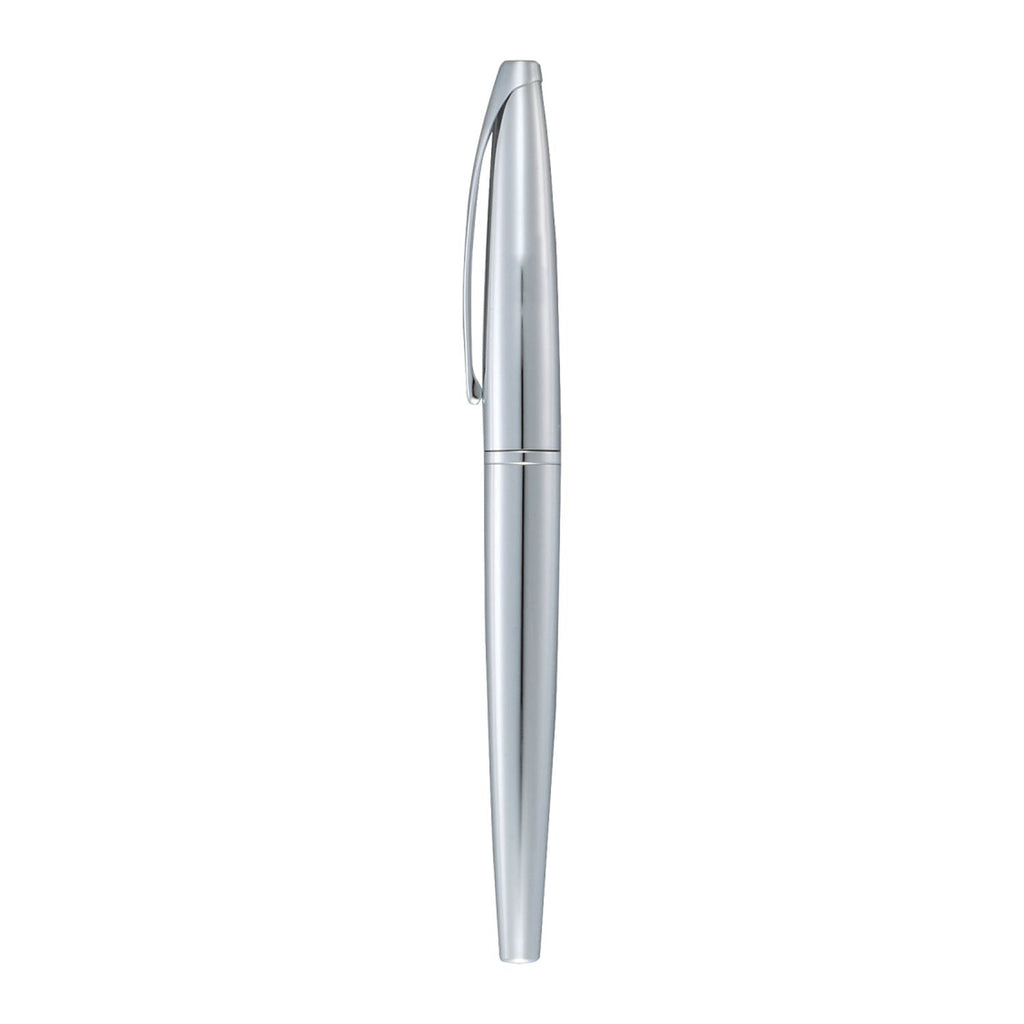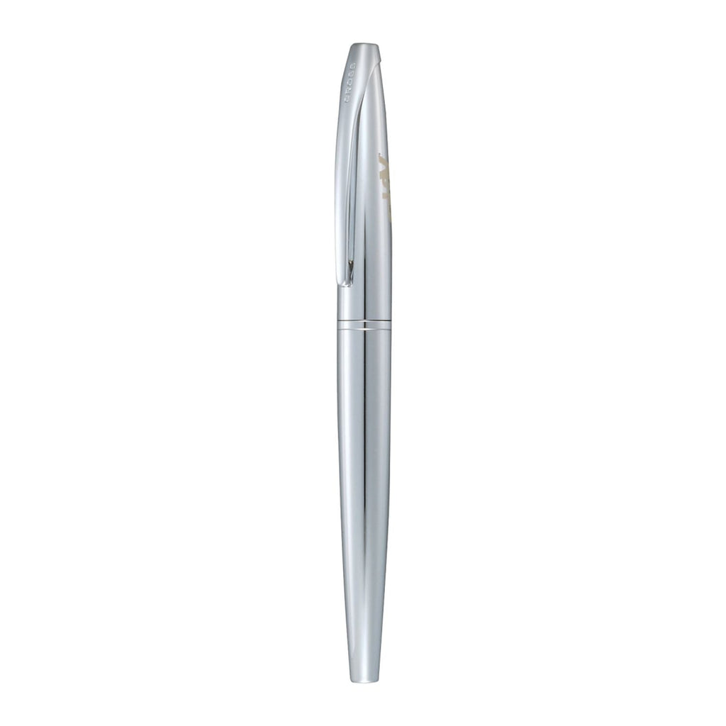 A pleasure to have and to hold, the ATX Collection showcases chic, contemporary style. With an ergonomic design accented by a super-smooth chrome finish, this brass rollerball pen is polished to perfection. It comes with a superior black Cross ink cartridge, premium gift packaging, and a lifetime mechanical guarantee to complete your writing experience. The Cross ATX Pure Chrome Rollerball also features an integrated clip and comes with a protective cap.
