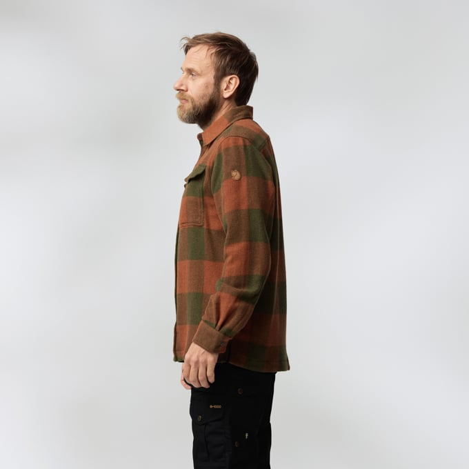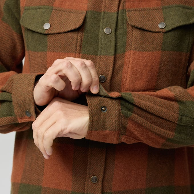 Robust, warm shirt in flannel made with recycled wool. It combines the warmth of wool with the durability of synthetic fibres. Details in G-1000 on the inside of the collar, cuffs, pocket flaps and front opening. Both chest pockets are positioned a little lower than other shirts for easier access. Works well as both a light jacket on mild autumn days and as a robust insulating mid layer on cold outings in the mountains.