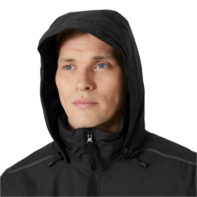 Manchester 2.0 Winter Jacket is a great choice for the winter days. Helly Tech® Protection main fabric keeps you dry under rough conditions. Adjustable and detachable hood, adjustable cuffs and hem will provide you with optimal fit. The brushed fleece inside the collar and extended back bring improved comfort on the worksite.