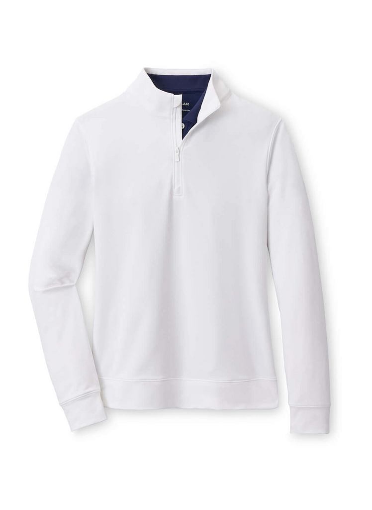 Peter Millar's signature performance pullover has been updated with a fresh new look. Made from a signature high-tech loop terry fabric, it offers four way stretch and moisture-wicking with a clean, classic sporty silhouette.