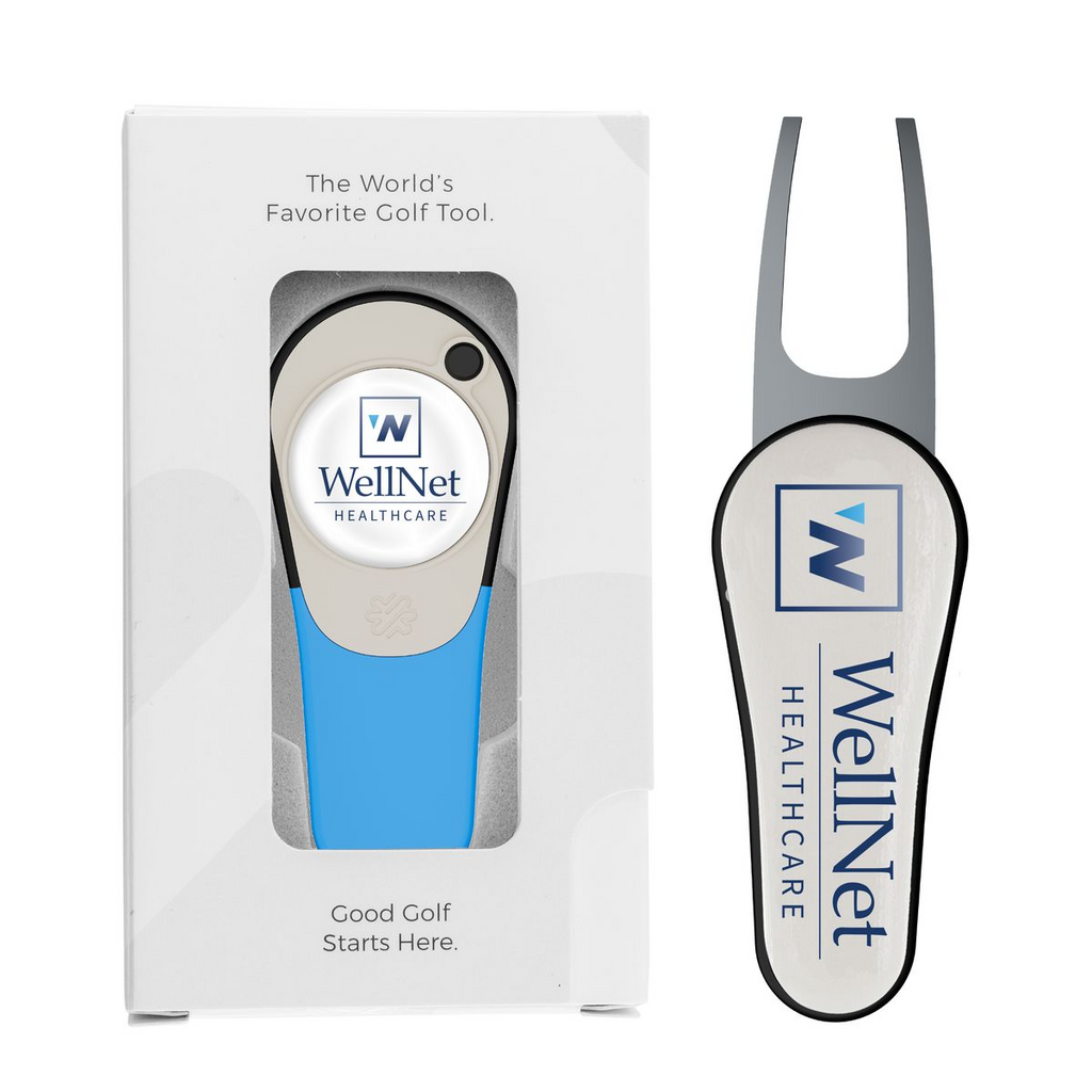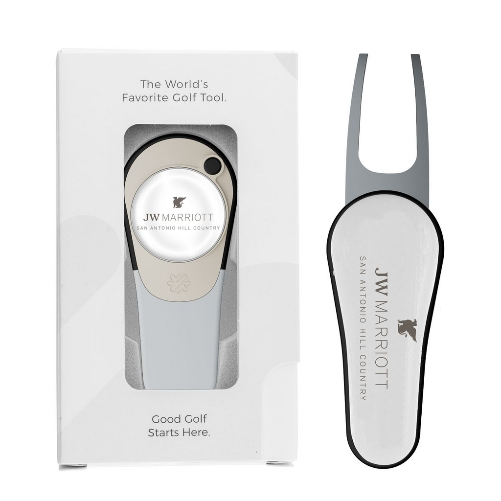 Pitchfix golf divot repair tools include the patented Pitchfix switchblade function and removable golf ball marker with full color dome imprint. Pricing includes divot tool packaged in Window Carton Gift Box. Perfect for golf tournament sponsorships, giveaways, and outing gifts.
