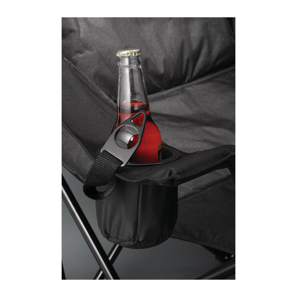 This Premium Padded Reclining Chair provides the durability you need with a steel frame that can hold up to 400lbs, and the added comfort of a padded design with three (3) adjustable reclining positions and a removable pillow. This reclining sports chair Includes a mesh cup holder, insulated cup holder, bottle opener and a study 600D carrying bag. Some assembly required. Chair must be inserted into bag.